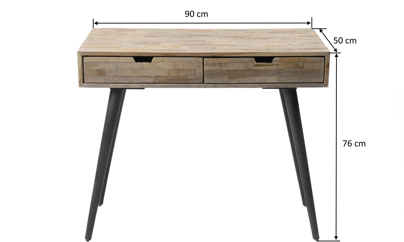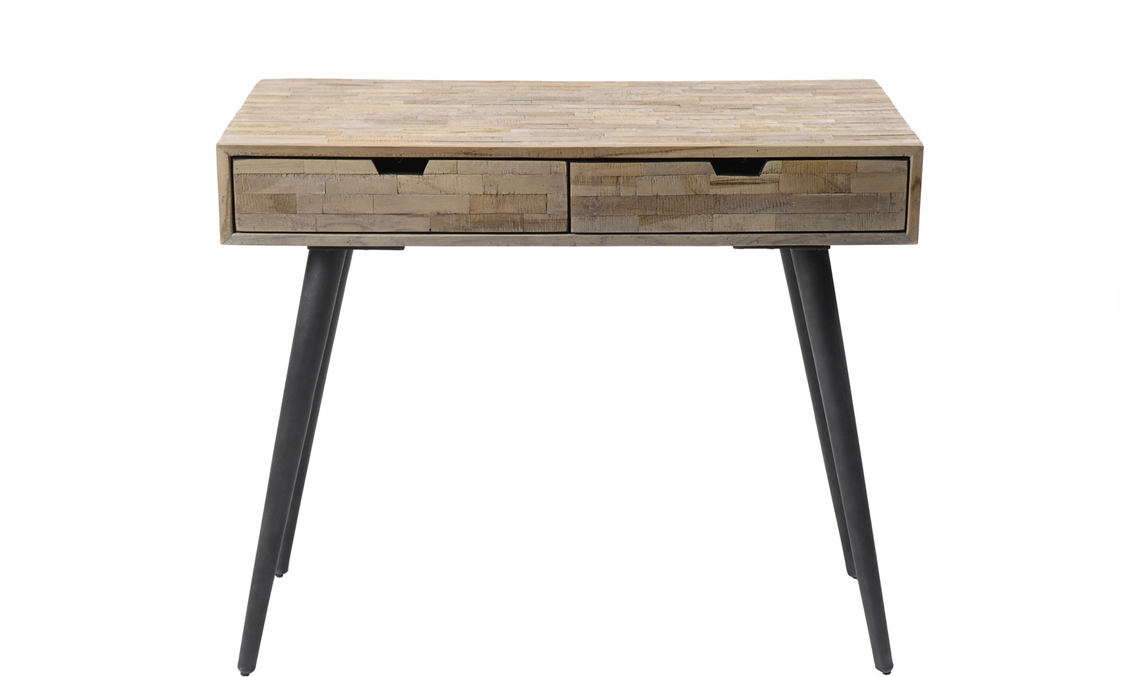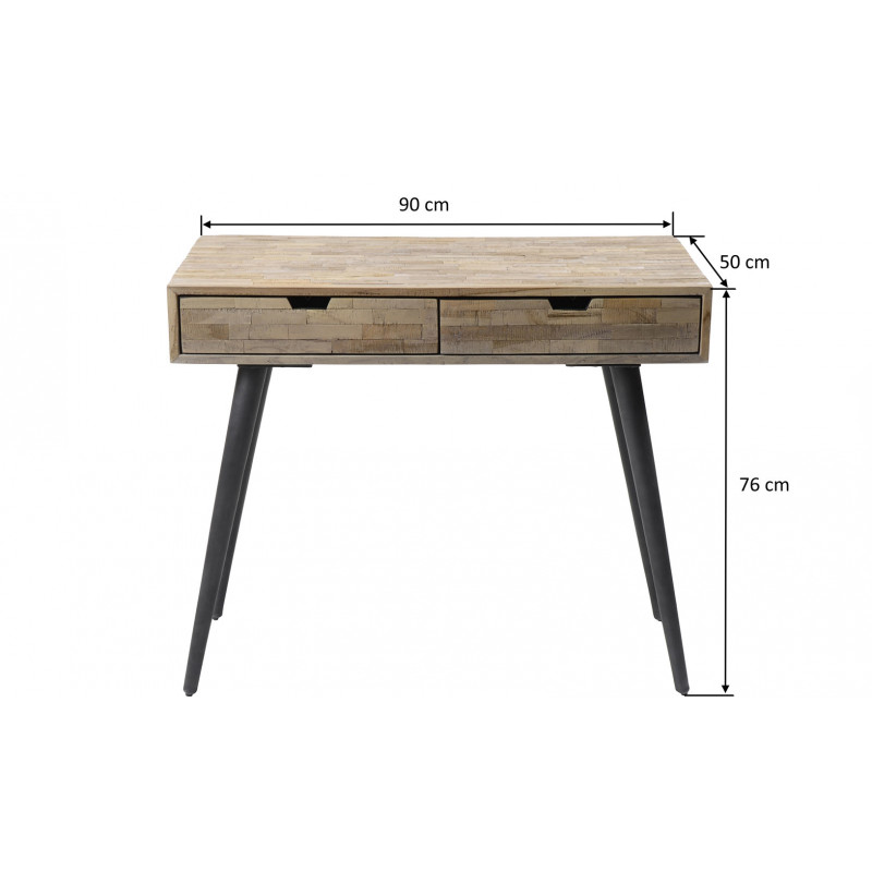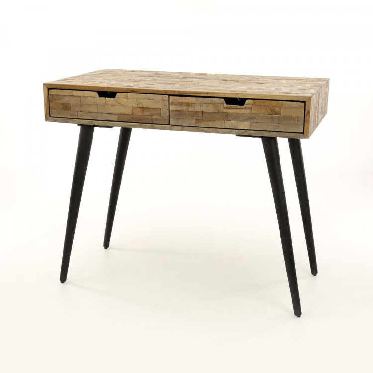 La robustesse, durabilité et modernité sont principaux atouts. Cette console en teck recyclé et acier va vous plaire à coup sûr ! Cette superbe coiffeuse au style scandinave Agathe transformera votre entrée en un coin unique et tendance. Elle se distingue non seulement par son côté esthétique, mais également par son usage prolongé et sa praticité. Son large plateau accueillera parfaitement vos vases, vos cadres de photos et tout autre élément de votre choix permettant de décorer à votre goûts votre chambre. De plus, vos petits accessoires auront aussi leur place dans les deux tiroirs de cette coiffeuse en teck teck recyclé.