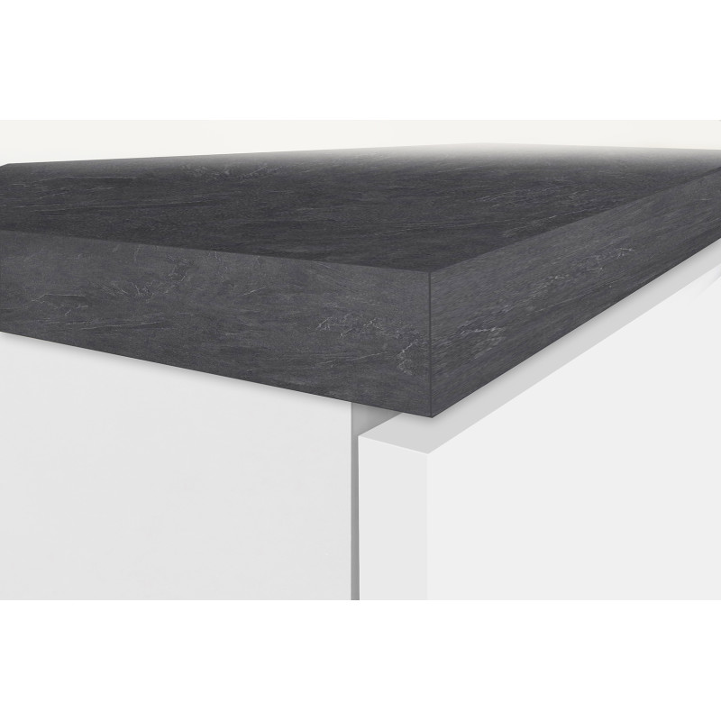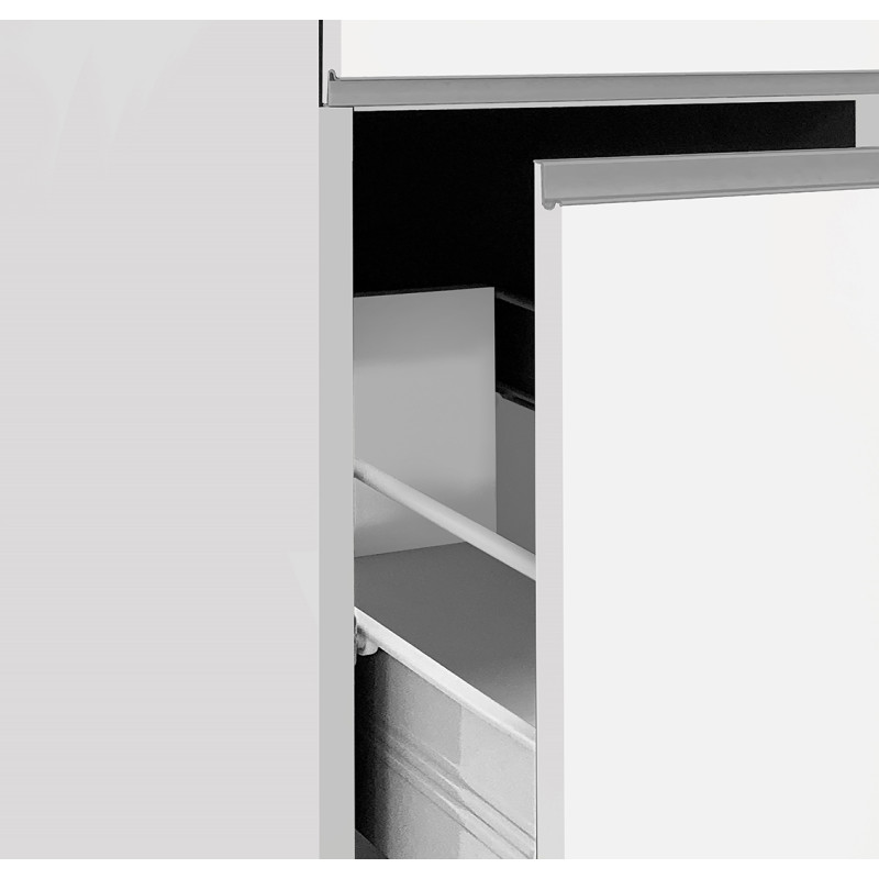 | Structure | Panneaux de particules mélaminés de première qualité de 16 mm d'épaisseur (corps : blanc mat/façades : blanc brillant) - plateau 25 mm avec chants ABS - poignées en aluminium encastrées |