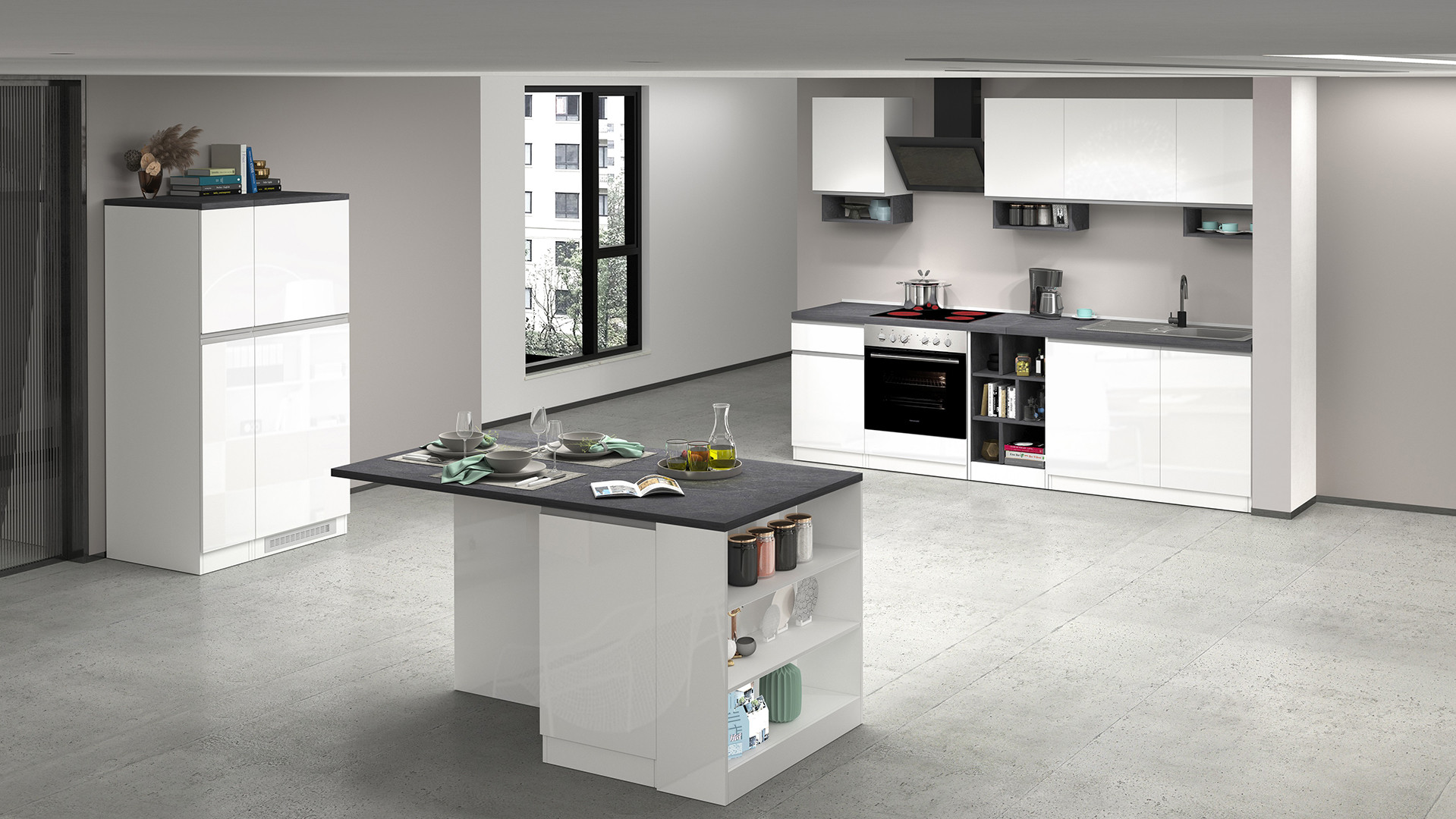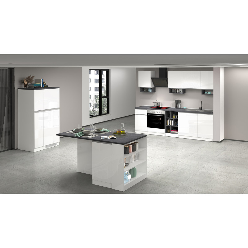 | Ilot de cuisine moderne 160 cm blanc brillant/béton Solena | | Longueur: 160 cm Hauteur: 90 cm Profondeur: 90 cm | En stock 48 à 72h | 431 € 99 | ||