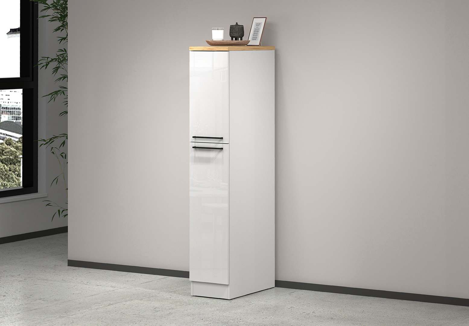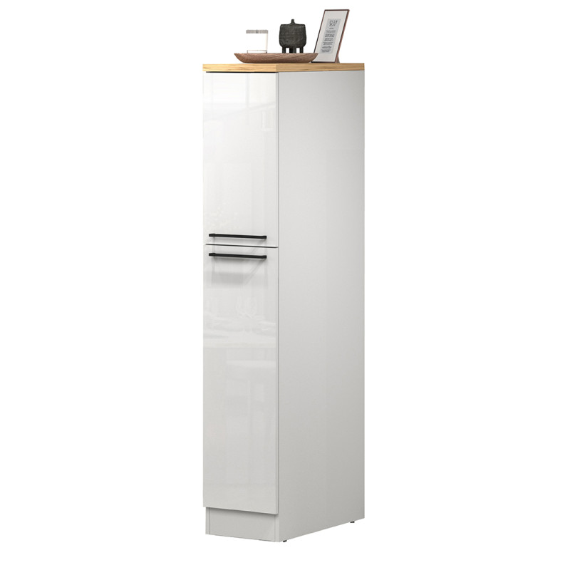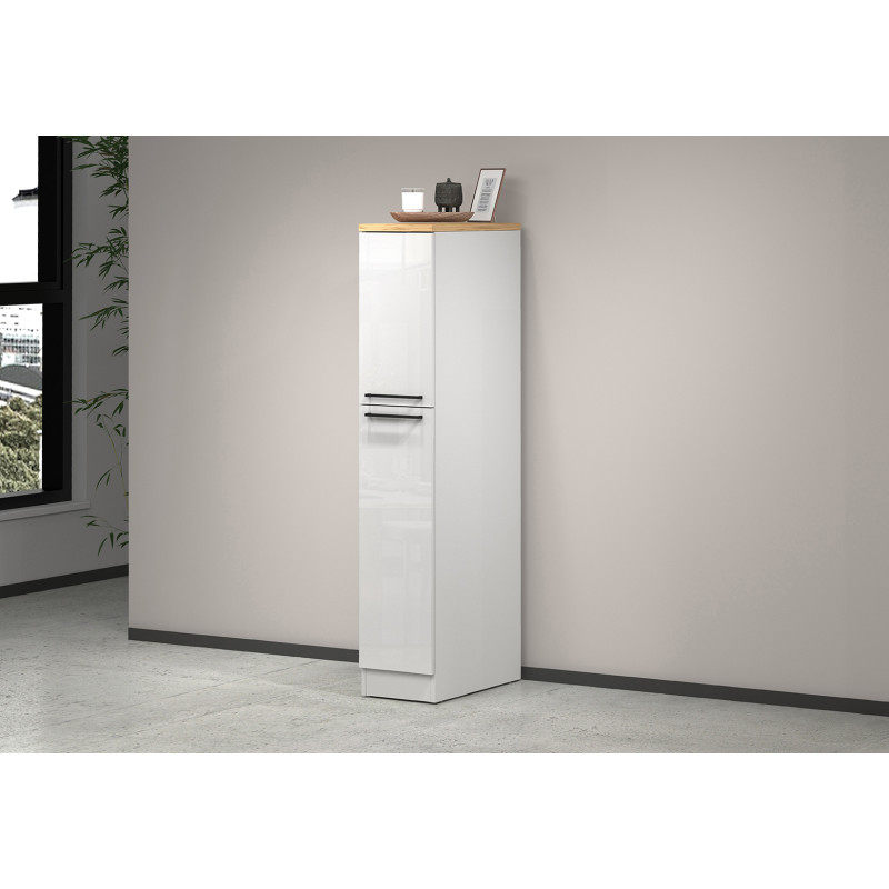 Apportez une touche d’élégance et de fonctionnalité à votre intérieur avec cette colonne de cuisine au design raffiné mêlant le blanc brillant et l'effet bois chêne wotan. Fabriqué en Italie par la marque Deladeco, ce meuble au style moderne est conçu pour un usage particulier et s’intègre parfaitement dans une cuisine contemporaine. Grâce à ses dimensions compactes (30 cm de largeur, 165 cm de hauteur et 60 cm de profondeur), il trouvera facilement sa place, même dans les petits espaces. Sa structure en panneaux de particules mélaminés de 16 mm et son plateau de 25 mm avec chants ABS garantissent solidité et durabilité.