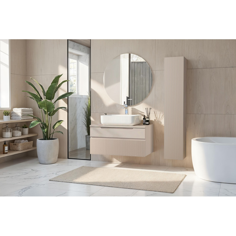 | Meuble sous vasque suspendu moderne 100 cm coloris cachemire Erio | | Longueur: 100 cm Hauteur: 41 cm Profondeur: 48 cm | En stock 3 à 4 semaines | 499 € 99 | ||