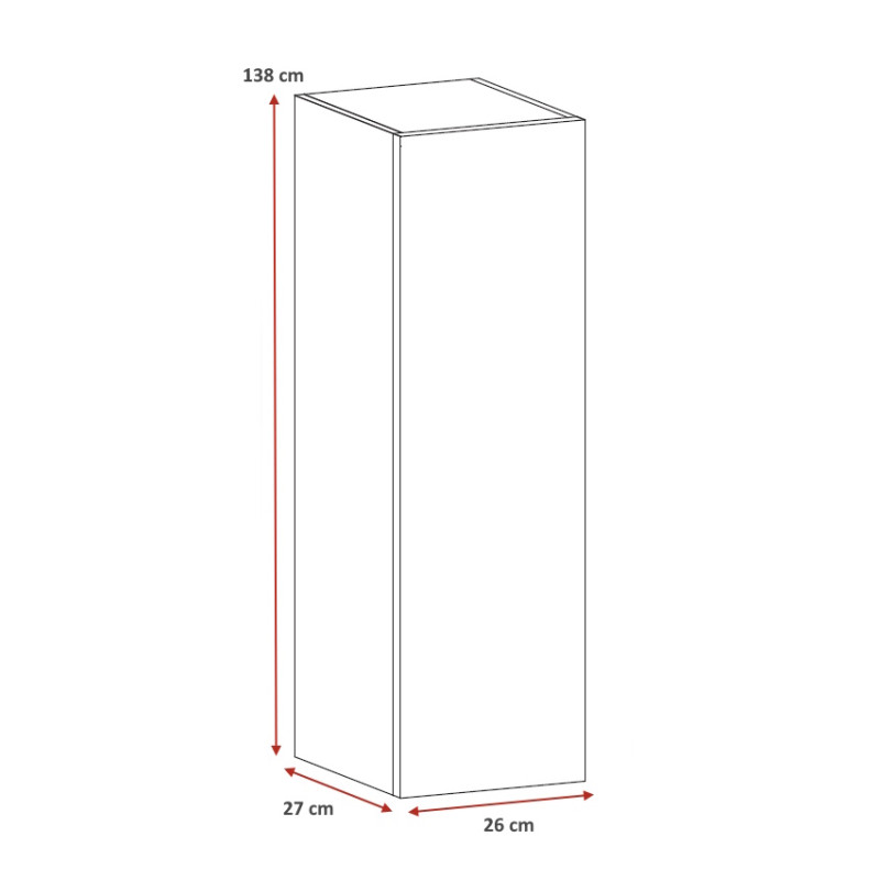 Avec ses dimensions parfaitement pensées — 26 cm de largeur, 27 cm de profondeur et 138 cm de hauteur — cette colonne de salle de bain s'adapte aux espaces les plus compacts sans sacrifier le volume de rangement. Sa structure est constituée de panneaux de particules mélaminés de première qualité en 16 mm et de façades en MDF 19 mm, garantissant une robustesse exemplaire face à l'humidité ambiante d'une salle de bain. Les chants ABS assurent une finition soignée sur chaque arête, protégeant durablement l'ensemble de la colonne contre les chocs et l'usure quotidienne.