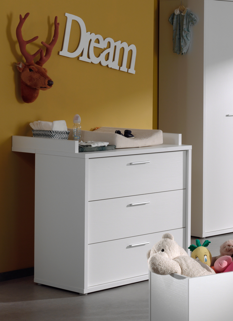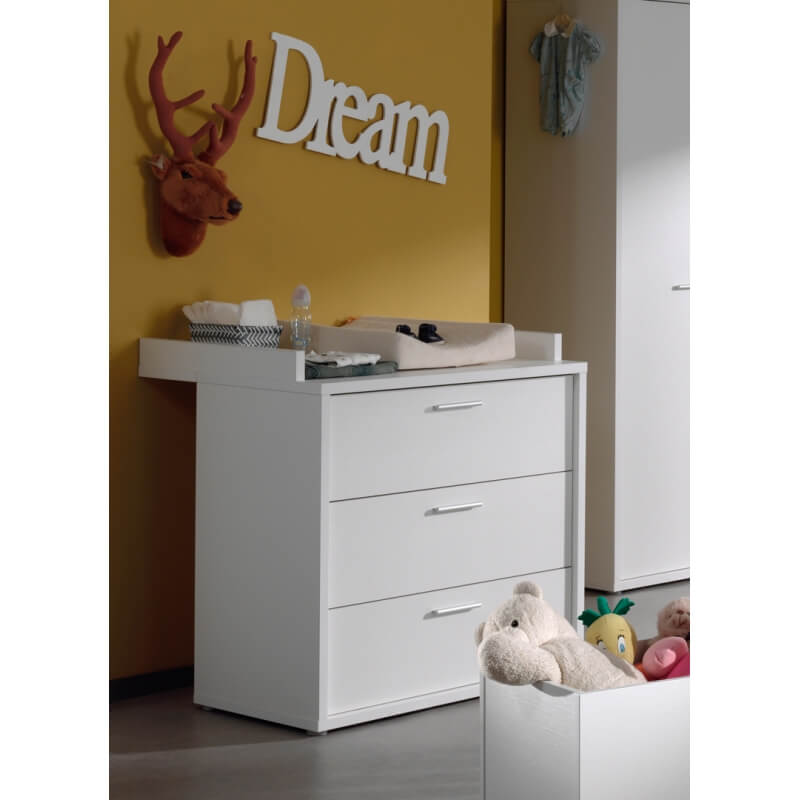 Sobre et élégante à la fois, la table à langer contemporaine Michele conviendra aussi bien pour une chambre de fille que celle d'un garçon. Sa structure est fabriquée en panneaux de particules de première qualité. Elle se compose de 3 grands tiroirs montés sur coulisses métalliques. Pour un ensemble harmonieux, optez également pour les autres éléments de la gamme Michele vendus séparément.
