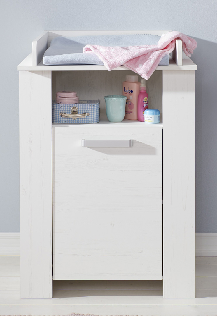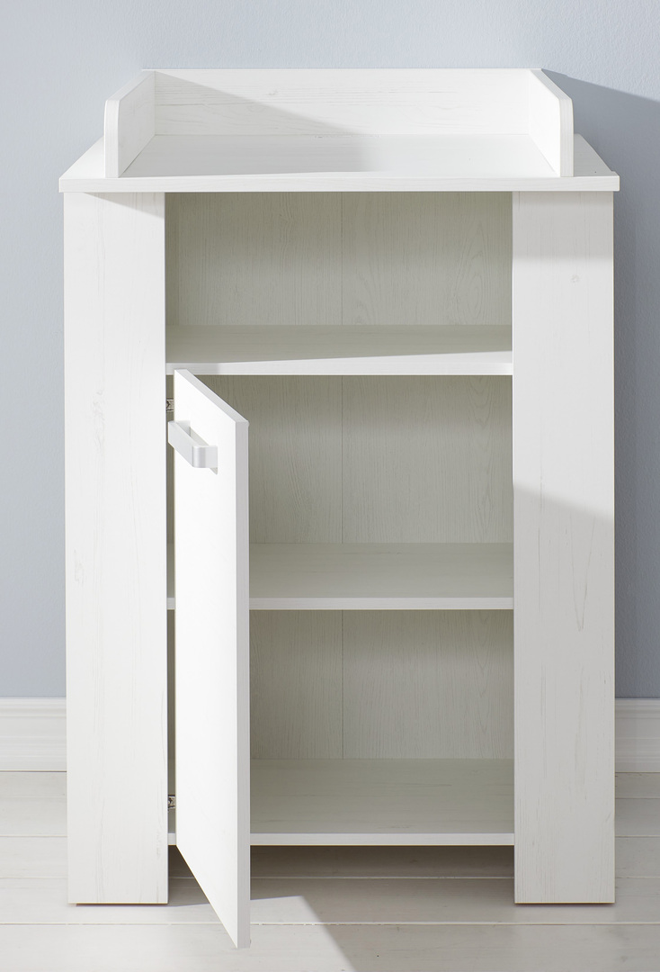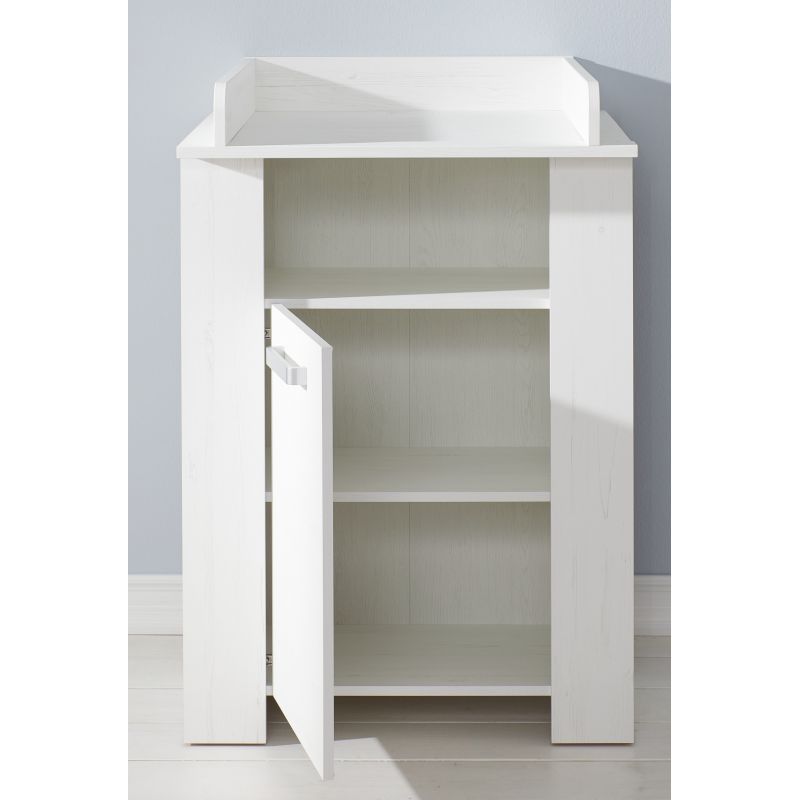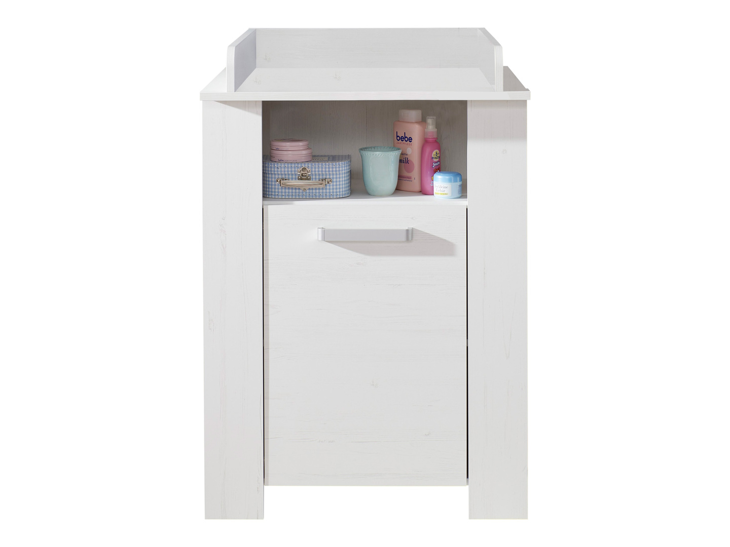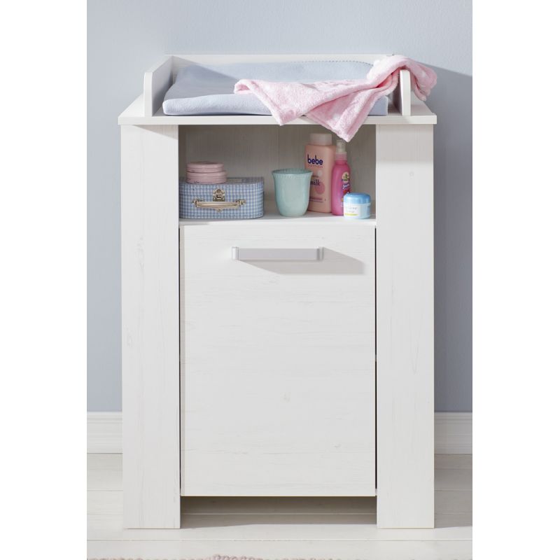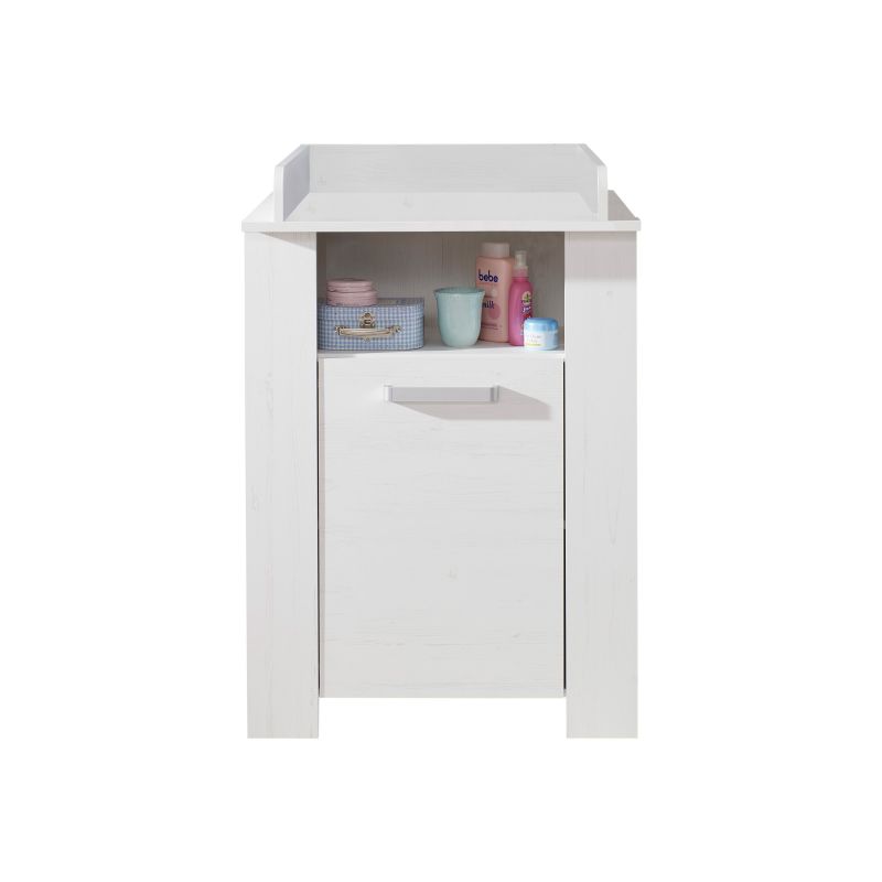 La table à langer contemporaine Marinette conviendra aussi bien pour une chambre de fille que celle d'un garçon. Sa structure est fabriquée en pin. Elle se compose d'une porte comprenant une étagère intérieure, d'une niche ouverte et d'un plan à langer amovible. Il vous sera possible de positionner l'ouverture de la porte côté droit ou gauche. Pour un ensemble harmonieux, optez pour les autres éléments de la gamme Marinette vendus séparément.