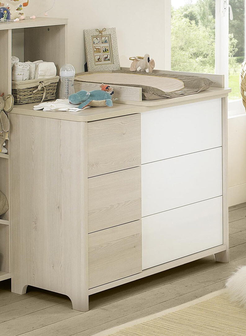 | Information complémentaire | Plan à langer amovible - tiroirs montés sur coulisses à galets grises |