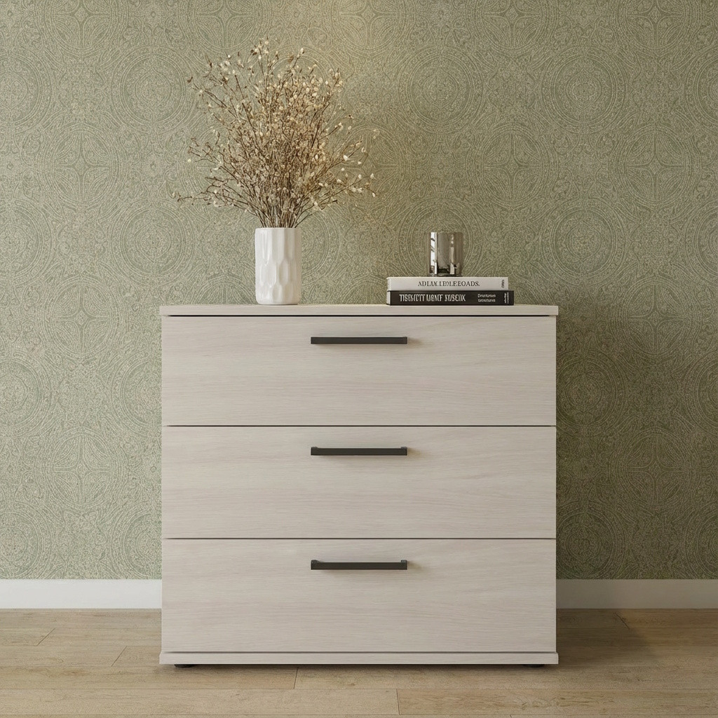 Dotée de trois tiroirs spacieux, cette meuble de rangement offre une capacité de stockage généreuse pour organiser vos vêtements, votre linge de maison ou vos accessoires. Chaque tiroir coulisse avec fluidité, permettant un accès facile à vos affaires. Cette solution de rangement pratique trouve naturellement sa place aux côtés d'autres meubles comme une commode et coiffeuse, créant ainsi un ensemble harmonieux et fonctionnel dans votre espace personnel. L'agencement intelligent des tiroirs maximise l'espace disponible tout en préservant l'esthétique épurée du meuble.