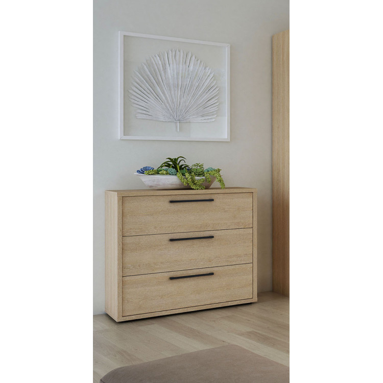 Besoin d’un meuble à la fois élégant et fonctionnel pour organiser l’espace ? La commode enfant contemporaine chêne sable Juliana est votre alliée idéale ! Imaginée par la marque Deladeco, elle marie parfaitement modernité et praticité. Son design épuré et raffiné lui permet de s’intégrer sans effort dans n’importe quelle chambre ou pièce de vie. Avec son joli coloris chêne sable, elle apporte une touche chaleureuse et naturelle qui s’adapte à tous les styles de déco. Côté rangement, ses trois tiroirs spacieux sont parfaits pour stocker vêtements, accessoires et petits objets du quotidien en un clin d’œil. En bonus : son montage est un jeu d’enfant grâce à une notice claire et intuitive. Un gain de temps et zéro prise de tête !