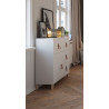 La commode Fidji offrira un bel espace de rangement grâce à sa porte et à ses quatre tiroirs aux dimensions généreuses.