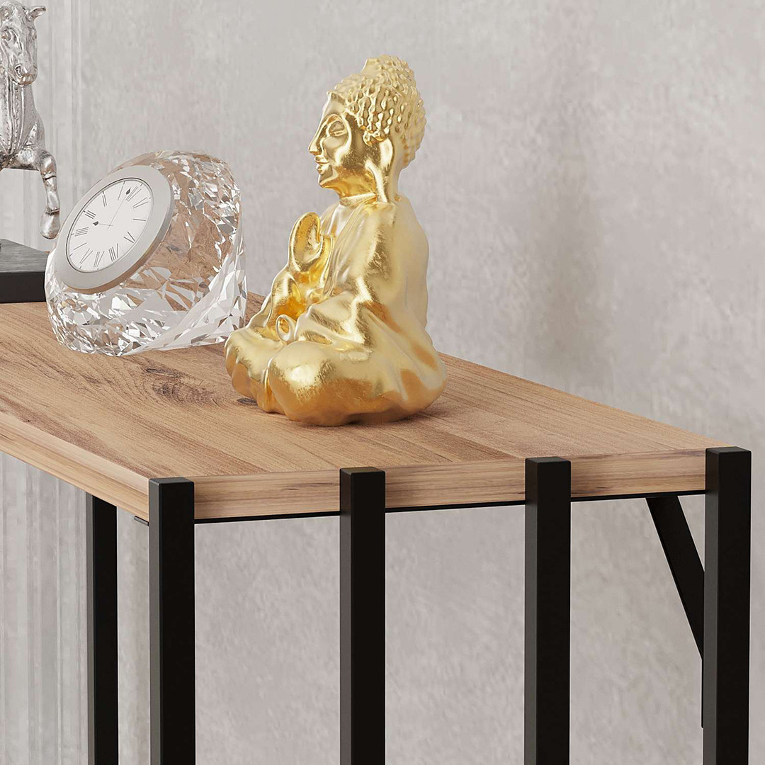 Idéale pour aménager une entrée, un couloir ou un salon industriel, cette table console offre une surface d'exposition élégante sur laquelle poser lampes, cadres, plantes ou objets décoratifs. Sa forme rectangulaire sobre et ses finitions mélaminées facilement entretenues — un simple chiffon doux et humide suffit — en font un meuble du quotidien particulièrement pratique. Elle s'adresse aussi bien aux particuliers désireux de donner du caractère à leur intérieur qu'aux amateurs de décoration tendance qui souhaitent affirmer un univers cohérent.