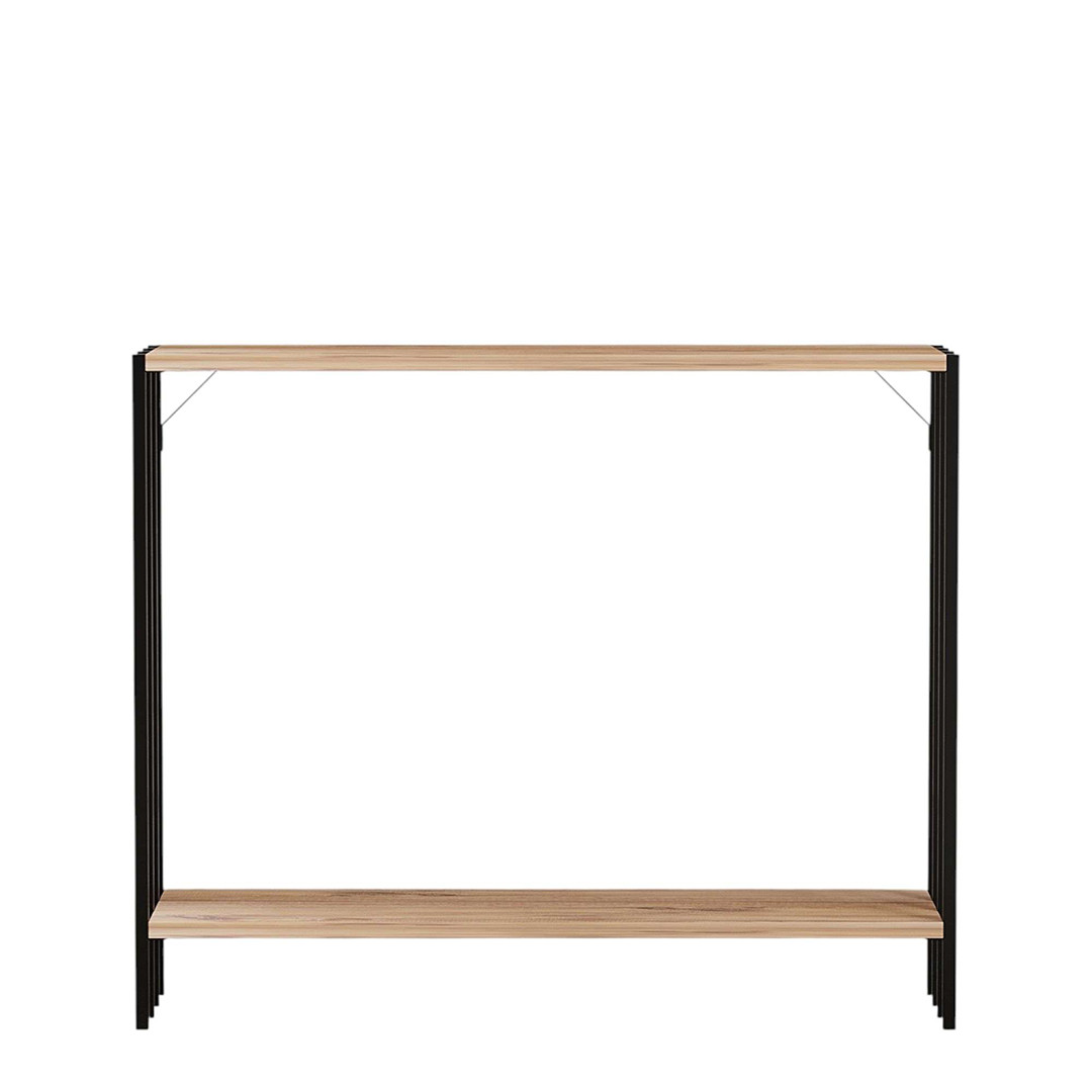 Conçue dans un style qui s'inscrit parfaitement dans la tendance loft, cette console industrielle repose sur un piétement en métal noir mat qui lui confère une solidité exemplaire et une élégance intemporelle. La structure, quant à elle, est fabriquée en panneaux de particules mélaminés de première qualité de 18 mm d'épaisseur, garantissant une excellente tenue dans le temps tout en assurant une finition soignée. Chaque détail a été pensé pour offrir un meuble aussi résistant que beau, capable de traverser les années sans perdre de son éclat.