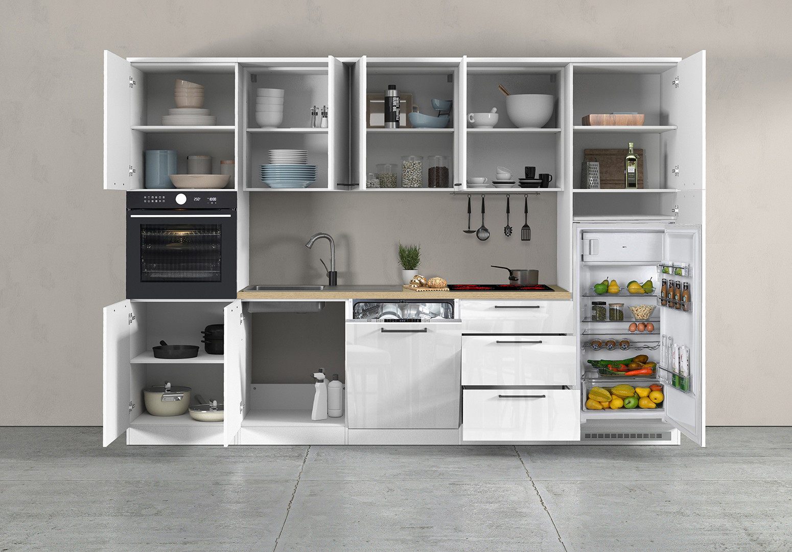 | Cuisine complète moderne 300 cm cachemire/chêne Louna | | Longueur: 300 cm Hauteur: 215 cm Profondeur: 58 cm | En stock 48 à 72h | 1910 € 99 | ||