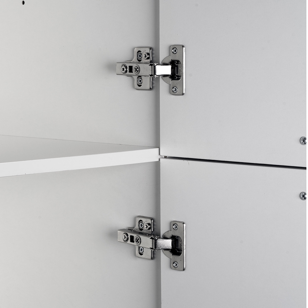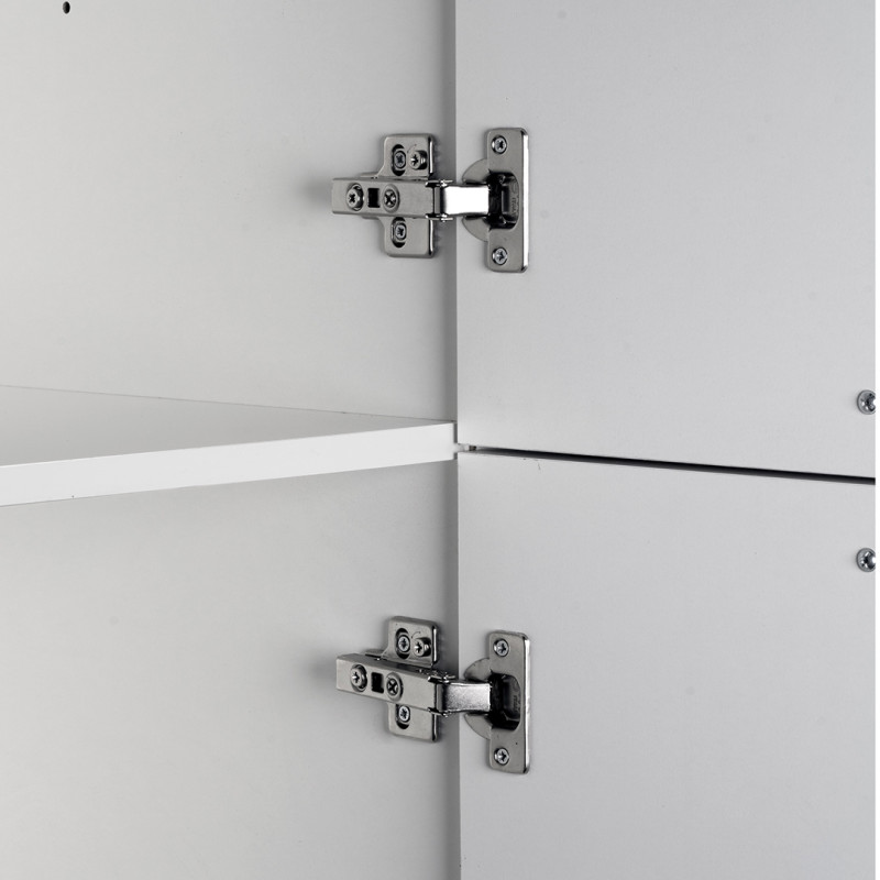 | Structure | Panneaux de particules mélaminés de première qualité de 16, 25 et 35mm d'épaisseur (corps : blanc mat/façades : blanc brillant) avec chants ABS - poignées en aluminium |