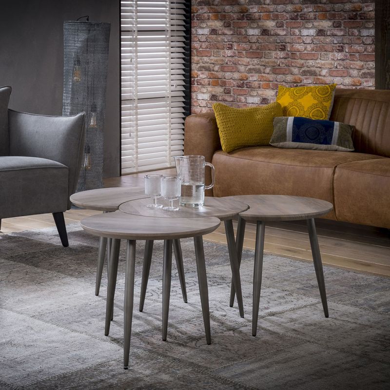 Ensemble de tables basses industrielles en acier noir avec plateau rond...