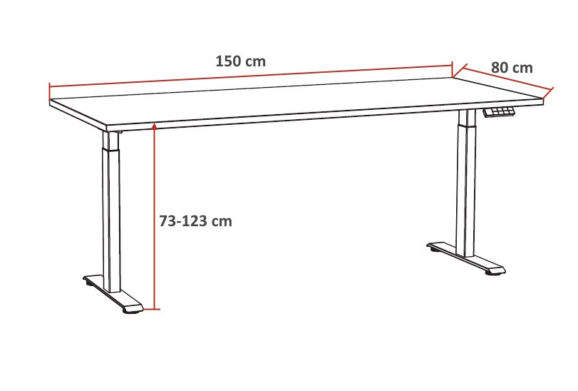 Bureau : L 150 x H 73-123 x P 80 cm ou L 180 x H 73-123 x P 80 cm ou L 200 x H 73-123 x P 80 cm