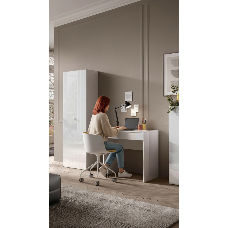 | Bureau droit moderne laqué blanc brillant Loucia | | Longueur: 78 ou 110 cm Hauteur: 76 cm Profondeur: 50 cm | En stock 3 à 4 semaines | 129 € 99 | ||