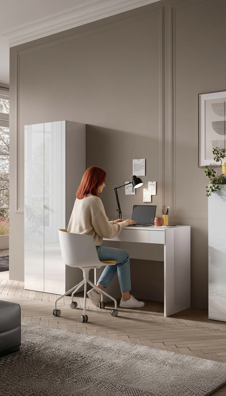 Avec sa finition laquée blanche, ce bureau s’intègre harmonieusement dans un intérieur moderne, offrant à la fois confort et inspiration pour vos journées de travail. Que vous soyez dans un environnement classique ou contemporain, son design épuré et minimaliste apportera une touche de sophistication tout en maximisant la praticité.