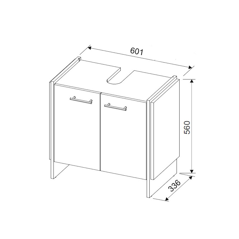 Meuble sous vasque : L 60 x H 56 x P 34 cm