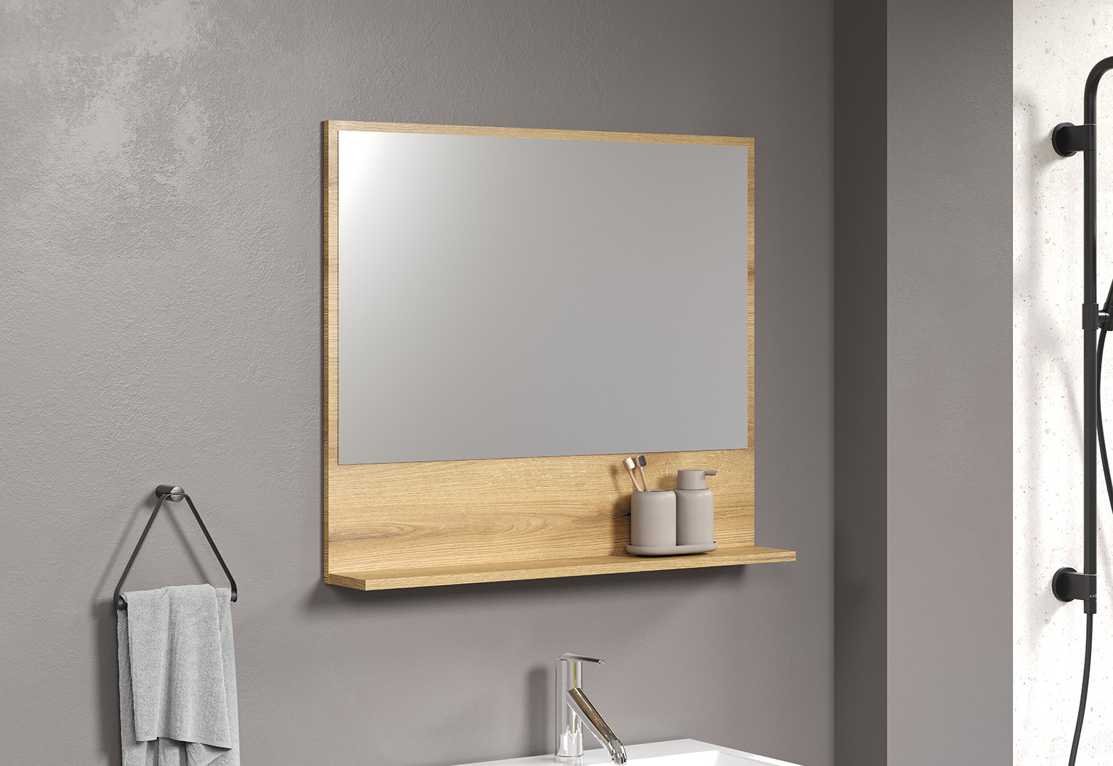 | Miroir de salle de bain contemporain chêne clair Lissandre | | Longueur: 80 cm Hauteur: 74 cm Profondeur: 14 cm | En stock 1 semaine | 109 € 99 |