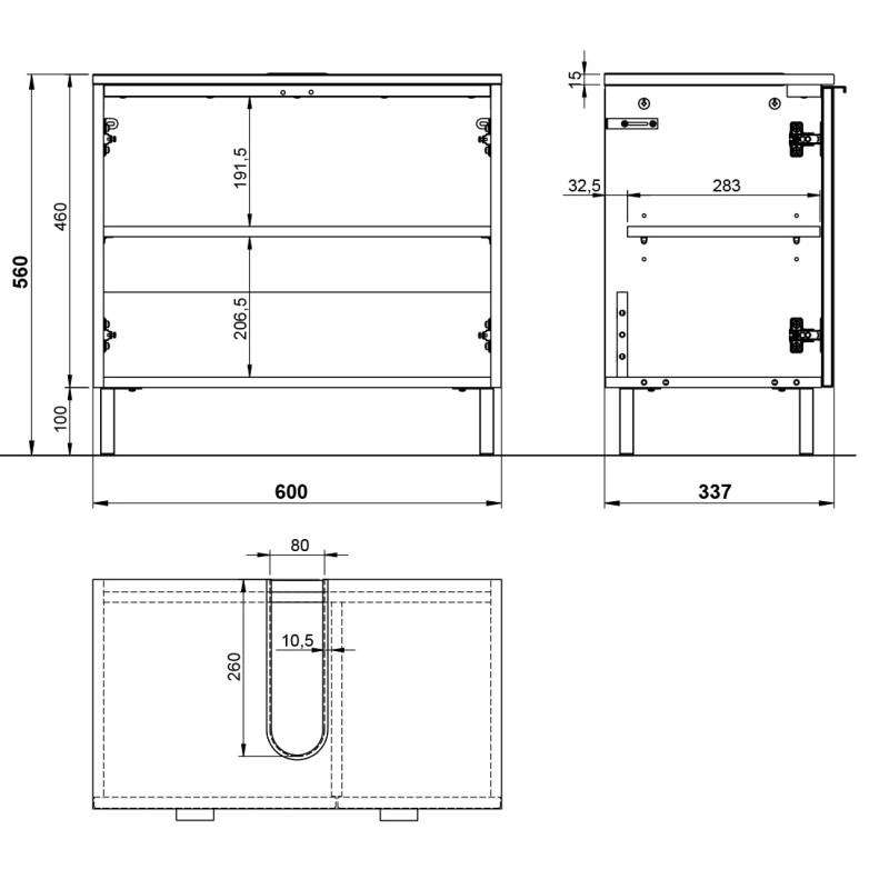 Chaque élément de cet ensemble de salle de bain est pensé pour faciliter votre routine matinale comme vos moments de détente. Le mobilier repose sur un piétement en métal noir thermolaqué, apportant une touche industrielle discrète, tout en garantissant robustesse et stabilité. Les portes battantes à système d’ouverture avec amortisseurs offrent un confort d’utilisation optimal et un usage silencieux au quotidien. Un éclairage LED intégré ainsi qu’une prise avec interrupteur viennent compléter ce meuble de salle de bain, rendant l’ensemble encore plus pratique et agréable à utiliser.