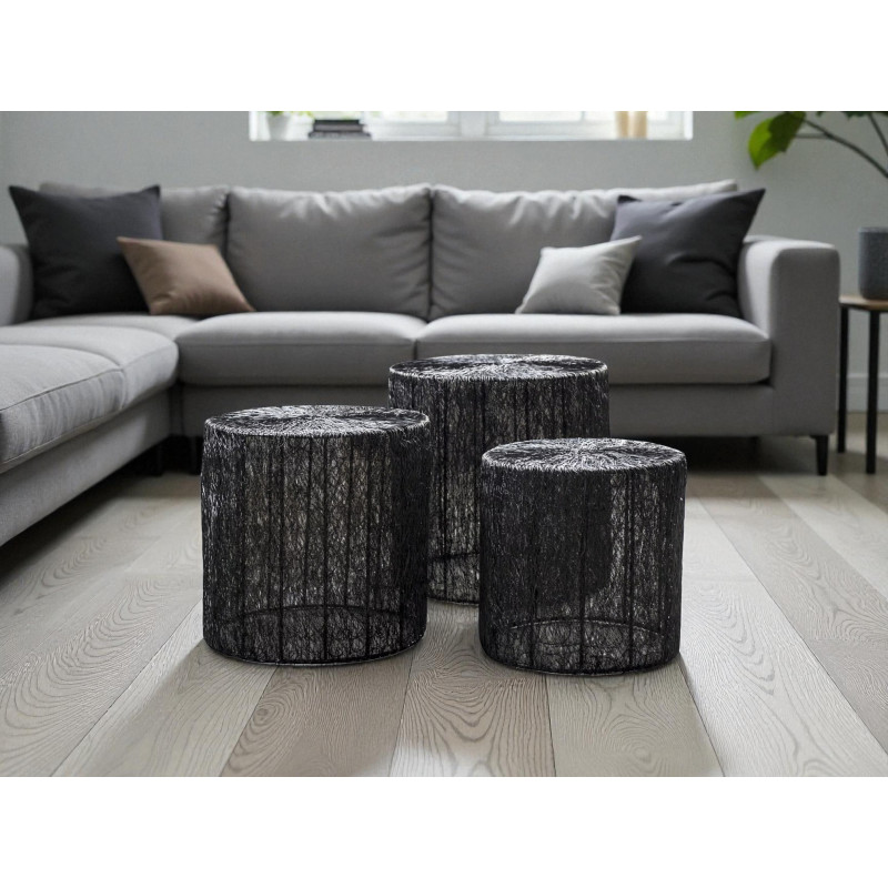 Ce superbe lot de 3 tables basses au style industriel est votre meuble décoratif le plus attrayant, dans votre salon, chambre à coucher ou salle à manger, l’élégance sera toujours au rendez-vous, notamment avec sa structure solide en acier noir et à sa finition. Le tout assorti avec le reste de vos meubles, il saura parfaitement ajouter de l’élégance à votre style décoratif ainsi qu'à votre intérieur. Pratique et chic à la fois, votre ensemble de 3 tables basses rondes industriel sera parfait pour embellir votre espace.