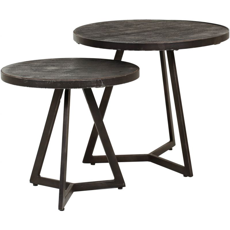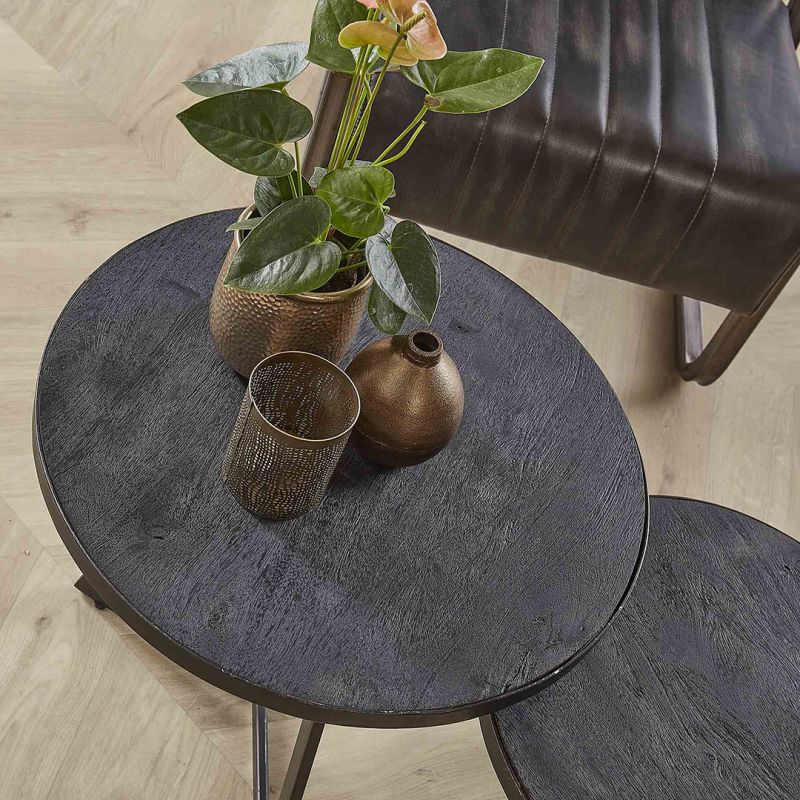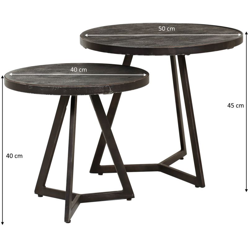 Ensemble contemporain de 2 tables d'appoint en aluminium et nickel noir...