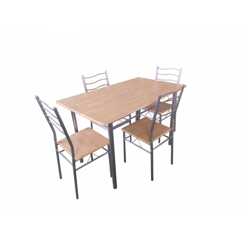 L'ensemble contemporain Carmen vous offrira un agréable moment de convivialité au moment du repas tout en apportant une touche moderne dans votre cuisine. Il se compose d'une table rectangulaire et de 4 chaises. La structure est fabriquée en métal. Le plateau et l'assise des chaises est en panneaux de particules de première qualité.