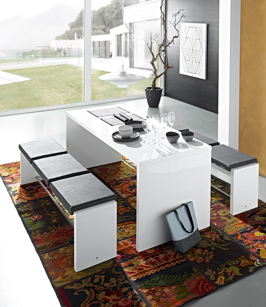 Pratique et élégant à la fois, l'ensemble Carioka II trouvera facilement sa place aussi bien dans votre cuisine que dans votre salle manger. Sa structure est fabriquée en panneaux de particules de haute qualité recouvert d'une laque brillante anti-rayures et anti-jaunissement. Il se compose d'une table 180 cm et de 2 bancs comprenant chacun 3 coussins d'assise. Les bancs sont dotés d'un repose pieds en métal.