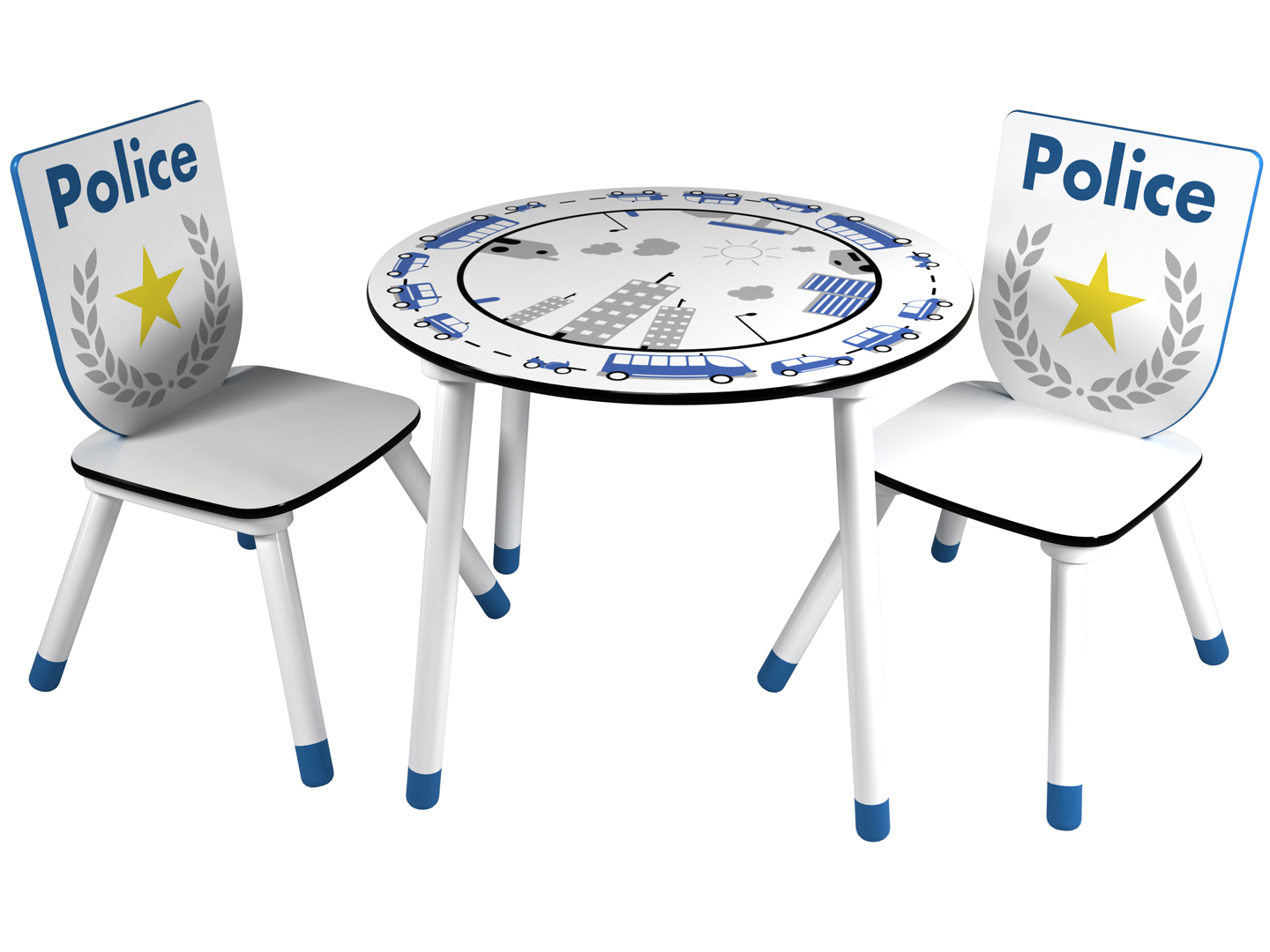 L'ensemble contemporain Security apportera une touche ludique et colorée dans la chambre de votre petit garçon. Le plateau de la table, l'assise et le dossier des chaises sont fabriqués en MDF recouverts d'une laque brillante. Les pieds sont en pin de 35 mm de diamètre. Il se compose d'une table ronde et de 2 chaises.