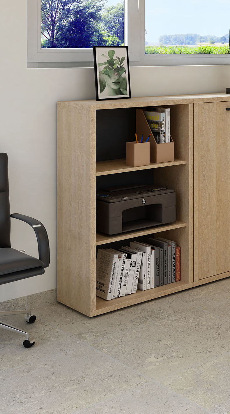 Armoire basse de bureau contemporaine chêne sable Lexos | ![]() | Longueur: 90 cm Hauteur: 112 cm Profondeur: 40 cm | En stock 1 à 2 semaines | 229 € 99 | ||