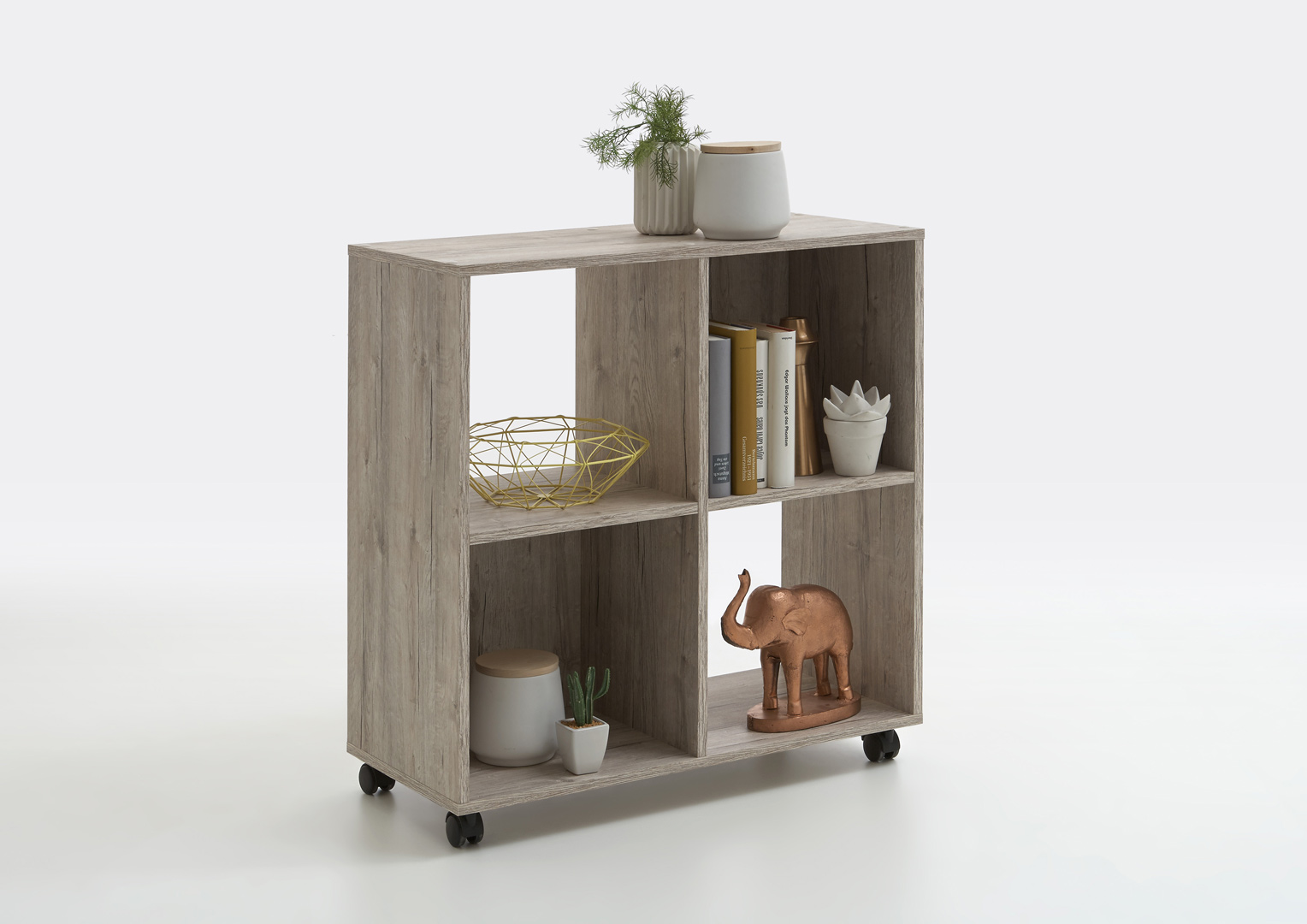 L'étagère de rangement Cameron vous offrira un espace de rangement appréciable dans votre intérieur tout en apportant une touche moderne. Sa structure est fabriquée en panneaux de particules de première qualité. Elle se compose de 4 compartiments. Montée sur 4 roulettes, vous pourrez la déplacer facilement où bon vous semble. Il vous sera possible d'ajouter les paniers de rangements en tissu Gama (vendus séparément).