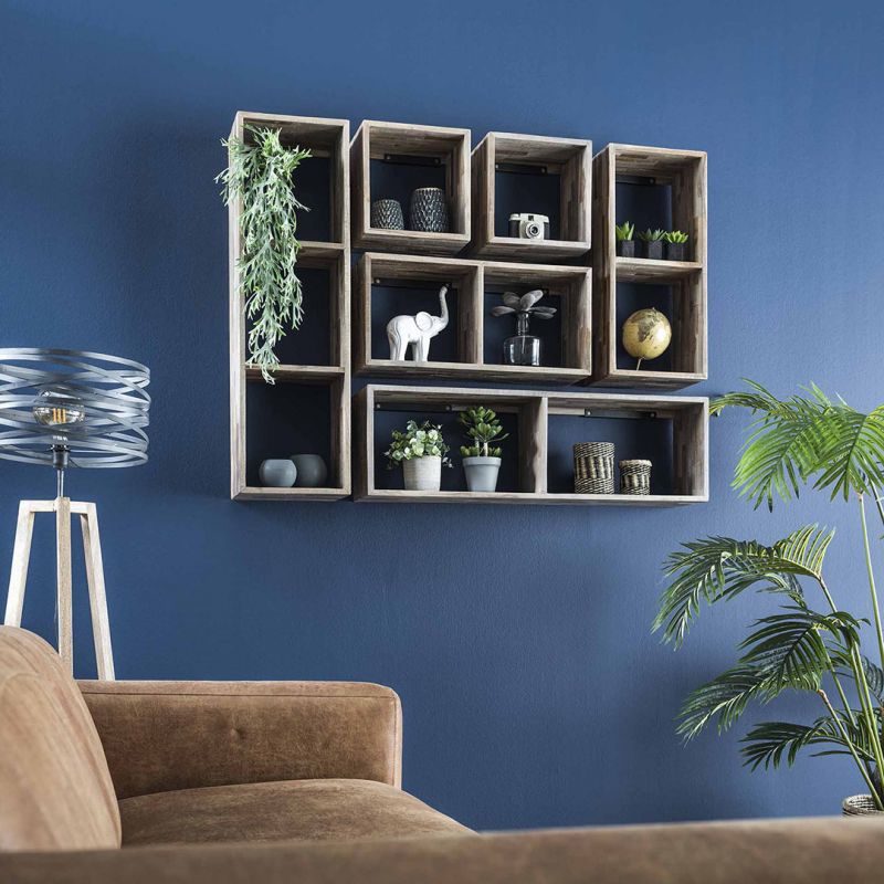 Etagère murale triangulaire industrielle en bois de manguier massif Pamela