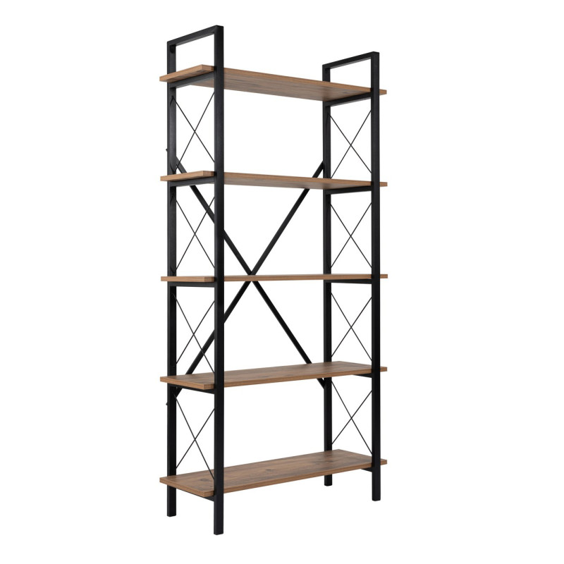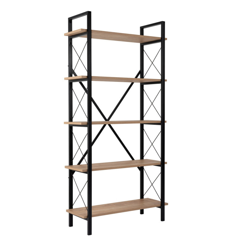 L'étagère industrielle Booker de la marque Deladeco incarne l'essence même du mobilier contemporain avec ses lignes épurées et sa structure métallique affirmée. Haute de 180 cm, cette étagère de rangement verticale optimise intelligemment l'espace tout en apportant une touche d'authenticité à votre intérieur. Sa structure tubulaire en métal noir de 20x30 mm, protégée par une peinture électrostatique résistante, garantit robustesse et durabilité. Les cinq plateaux en panneaux de particules mélaminés offrent un large choix de finitions – pin atlantic, chêne, travertin, noyer, blanc ou noir – permettant d'harmoniser cette étagère avec n'importe quel style de décoration existant.