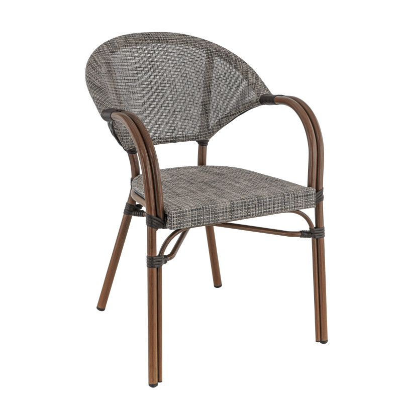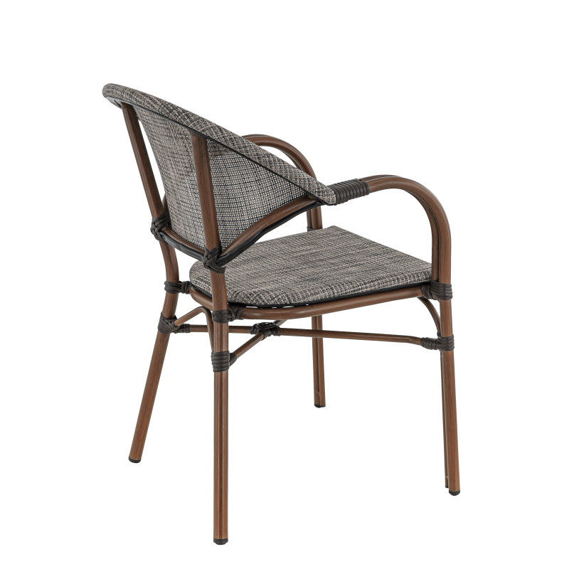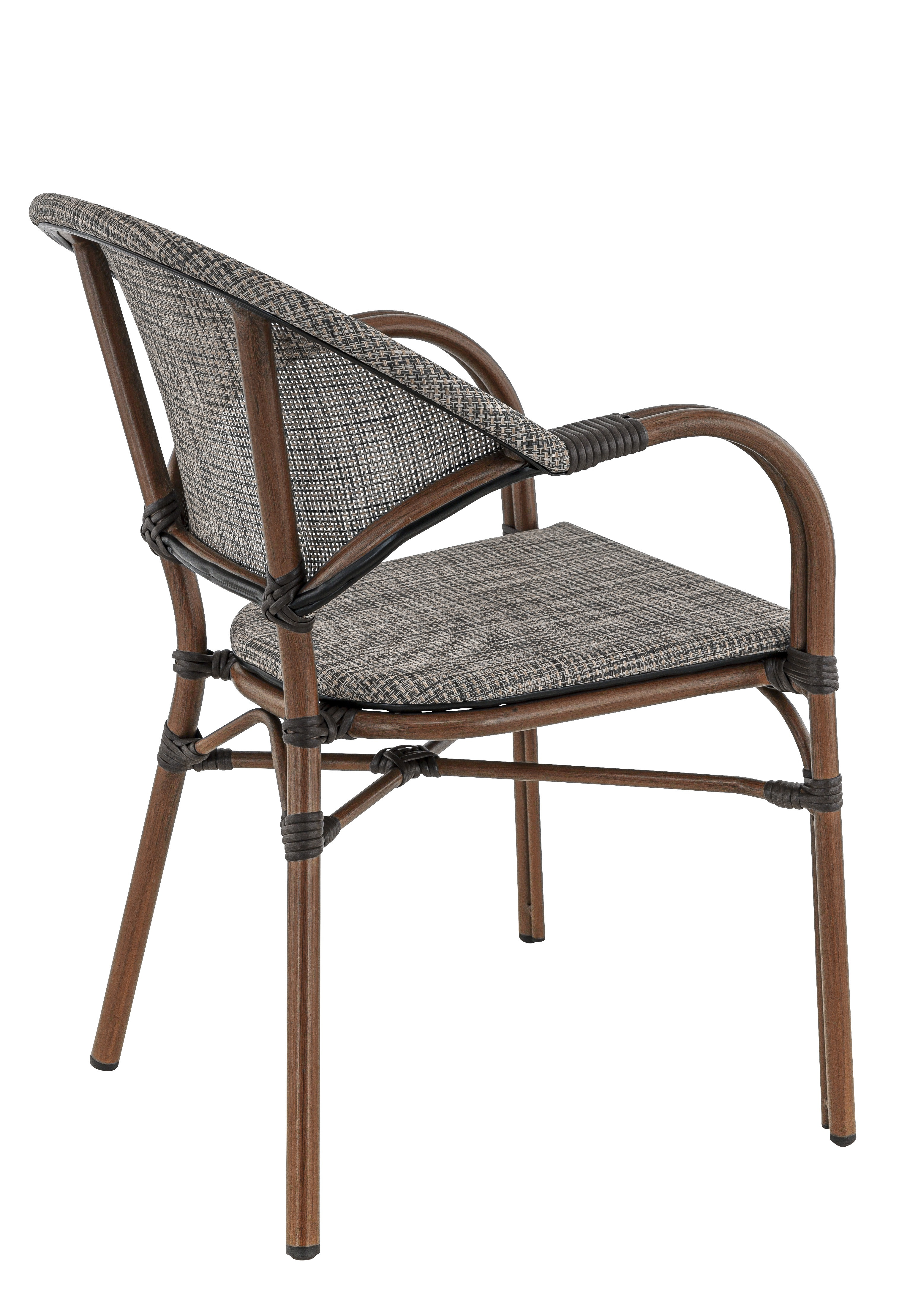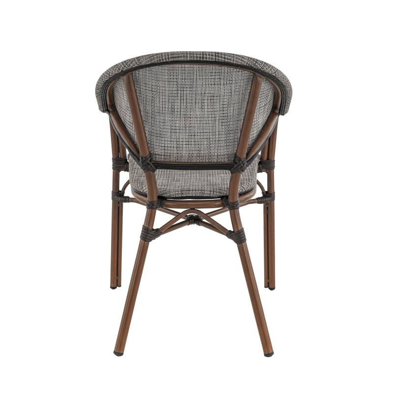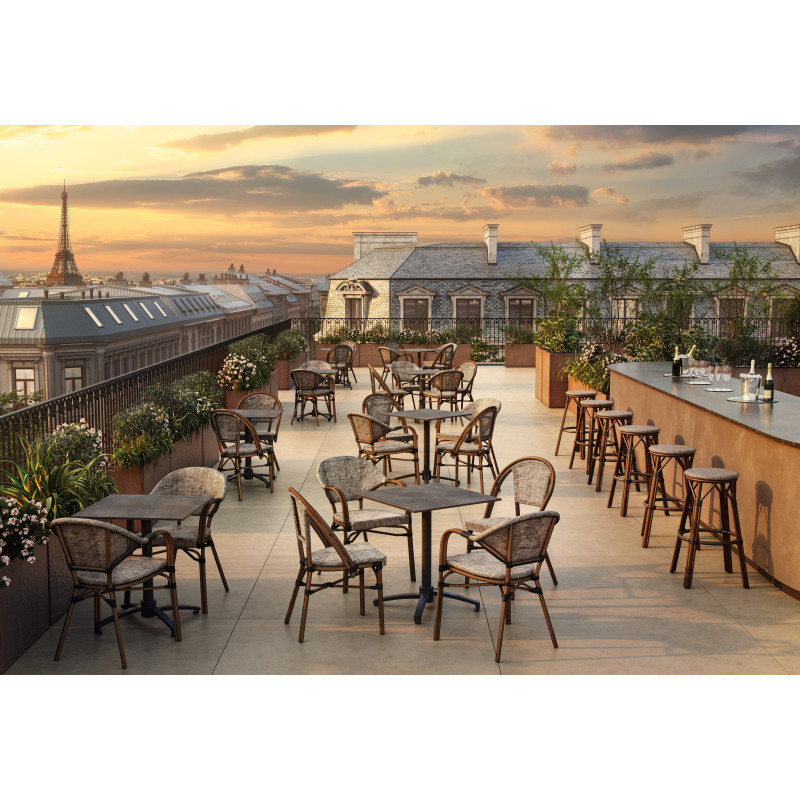 Pensé pour les professionnels exigeants, le fauteuil de bistrot Marne est l’allié parfait des terrasses et jardins. Avec sa structure en aluminium finition époxy façon bambou, il combine solidité et légèreté, idéal pour une utilisation intensive en extérieur. Son revêtement en textilène 4x4 assure non seulement un confort optimal, mais aussi un entretien ultra simple. Son coloris gris/beige apporte une touche sophistiquée et s’intègre harmonieusement dans tout type d'espace, qu’il soit contemporain ou plus classique.