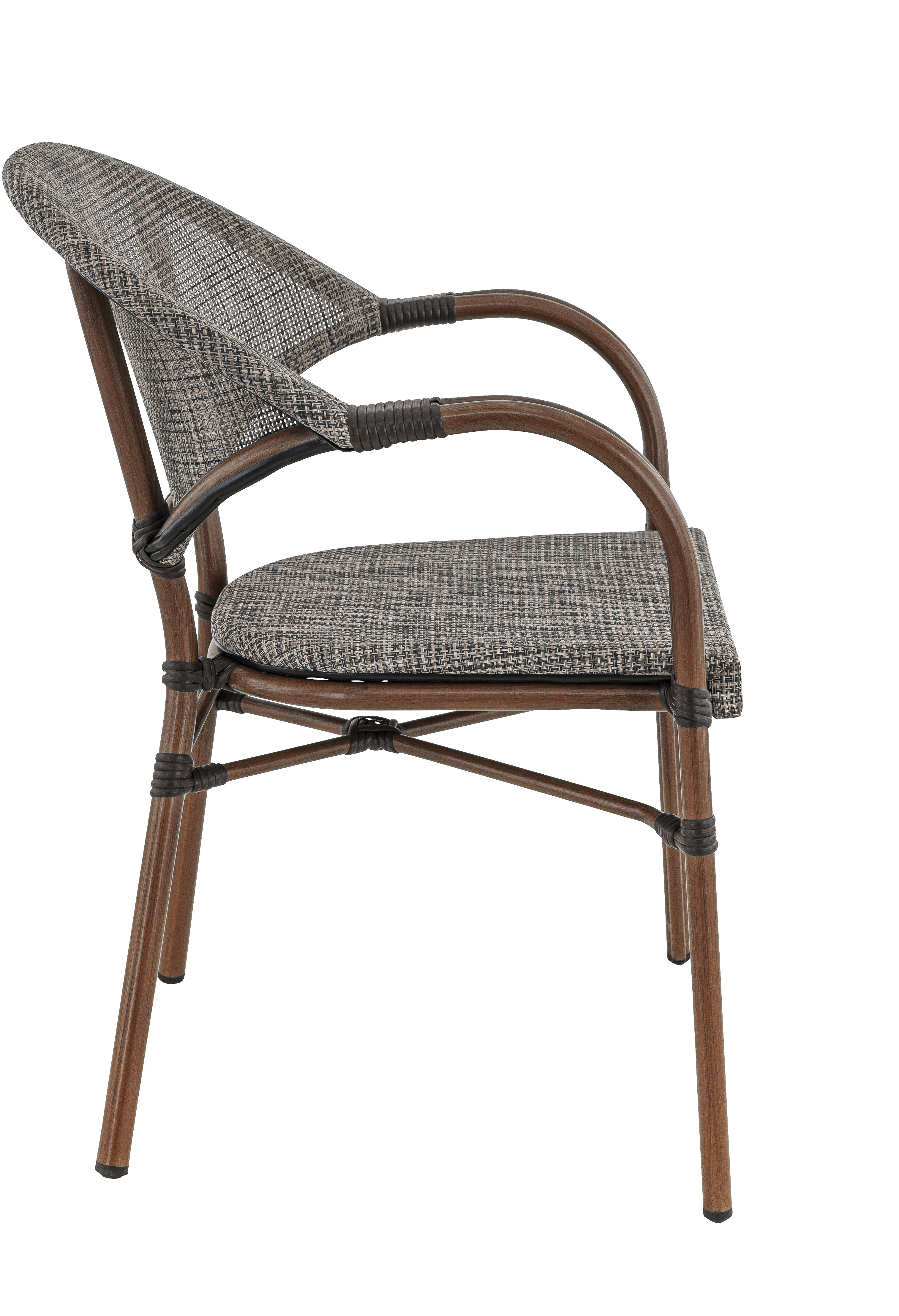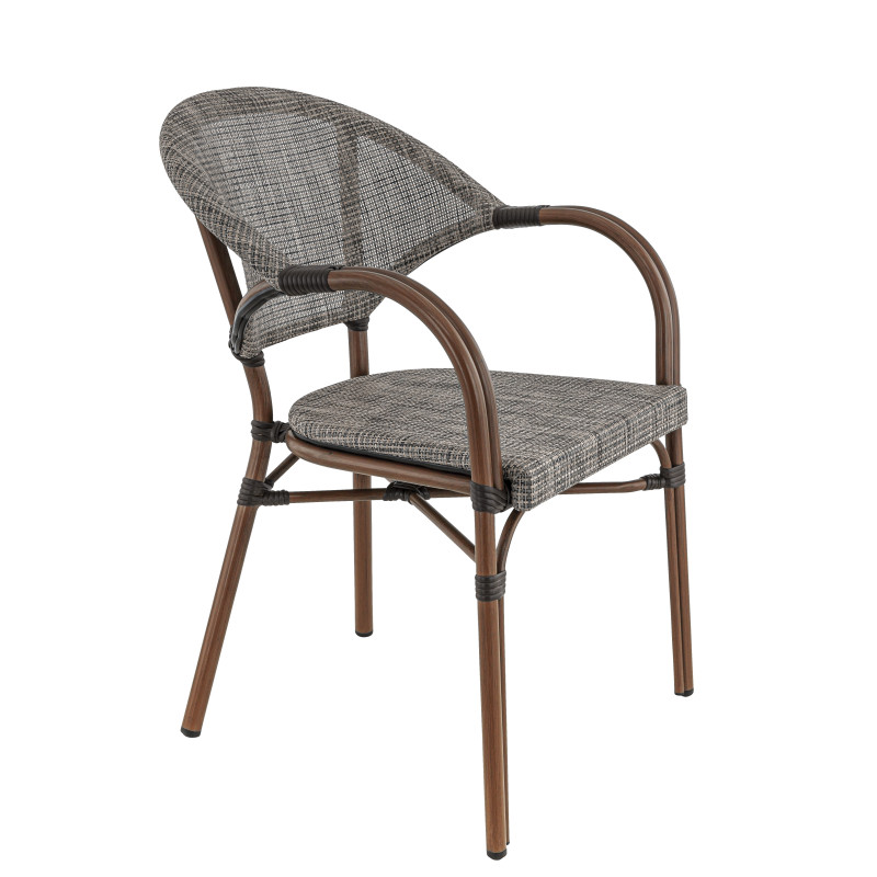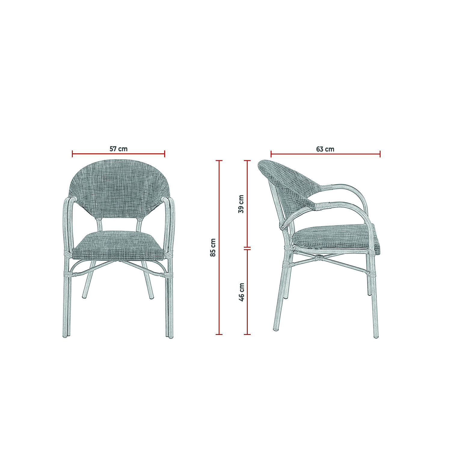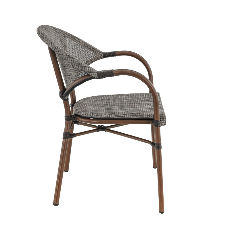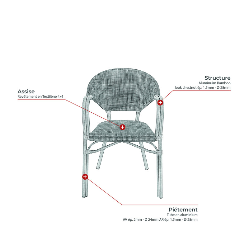 Pensé pour les professionnels exigeants, le fauteuil de bistrot Marne est l’allié parfait des terrasses et jardins. Avec sa structure en aluminium finition époxy façon bambou, il combine solidité et légèreté, idéal pour une utilisation intensive en extérieur. Son revêtement en textilène 4x4 assure non seulement un confort optimal, mais aussi un entretien ultra simple. Son coloris gris/beige apporte une touche sophistiquée et s’intègre harmonieusement dans tout type d'espace, qu’il soit contemporain ou plus classique.