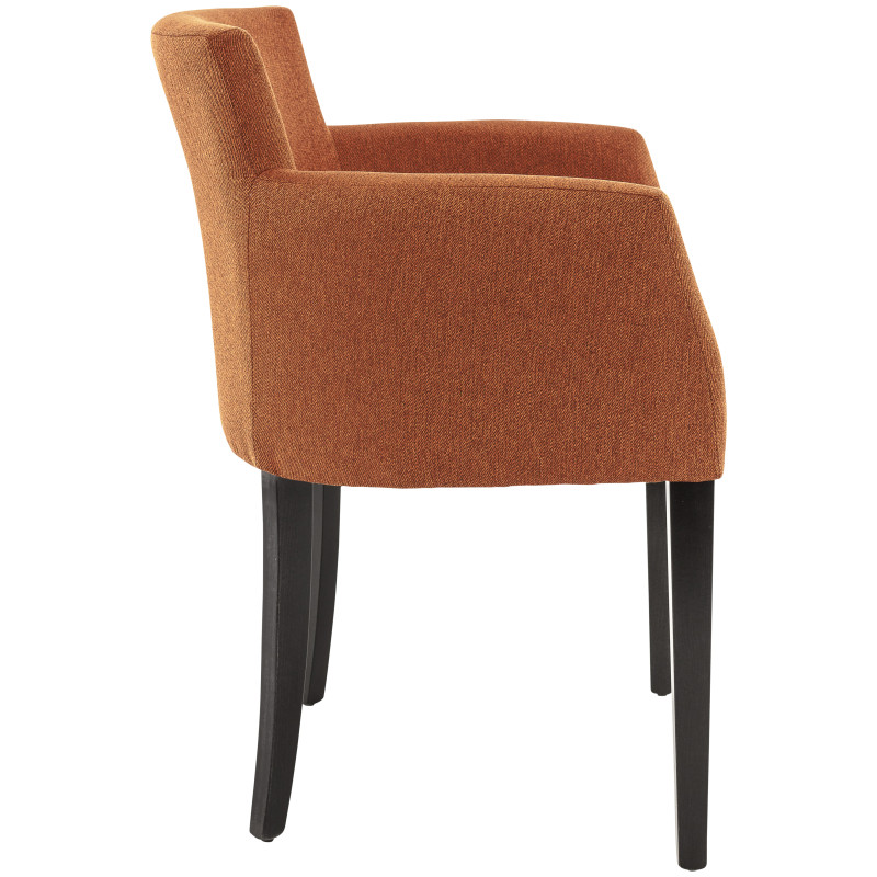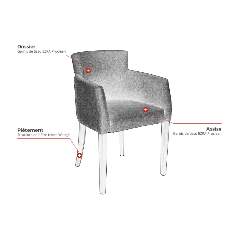 La solidité du fauteuil de brasserie hêtre massif et tissu Maddie se distingue par son bois de hêtre teinté wengé, assurant une résistance remarquable même avec un usage quotidien intense. Sa large assise de 58 cm et une hauteur de 49 cm sont pensées pour accueillir confortablement diverses morphologies. Le nettoyage est un jeu d'enfant grâce à son revêtement en tissu facile à entretenir avec simplement un chiffon doux et humide, idéal dans un cadre professionnel où la praticité est essentielle.