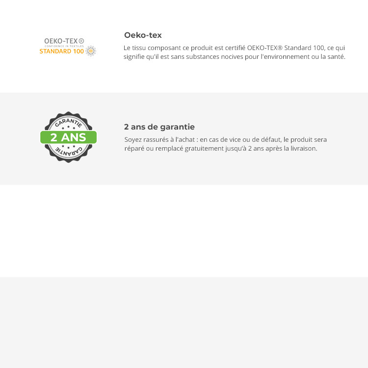 En cas de vice ou défaut, le produit sera réparé ou remplacé gratuitement dans les 2 ans à venir.