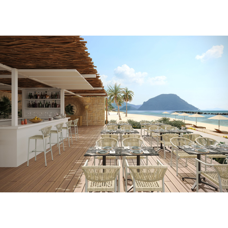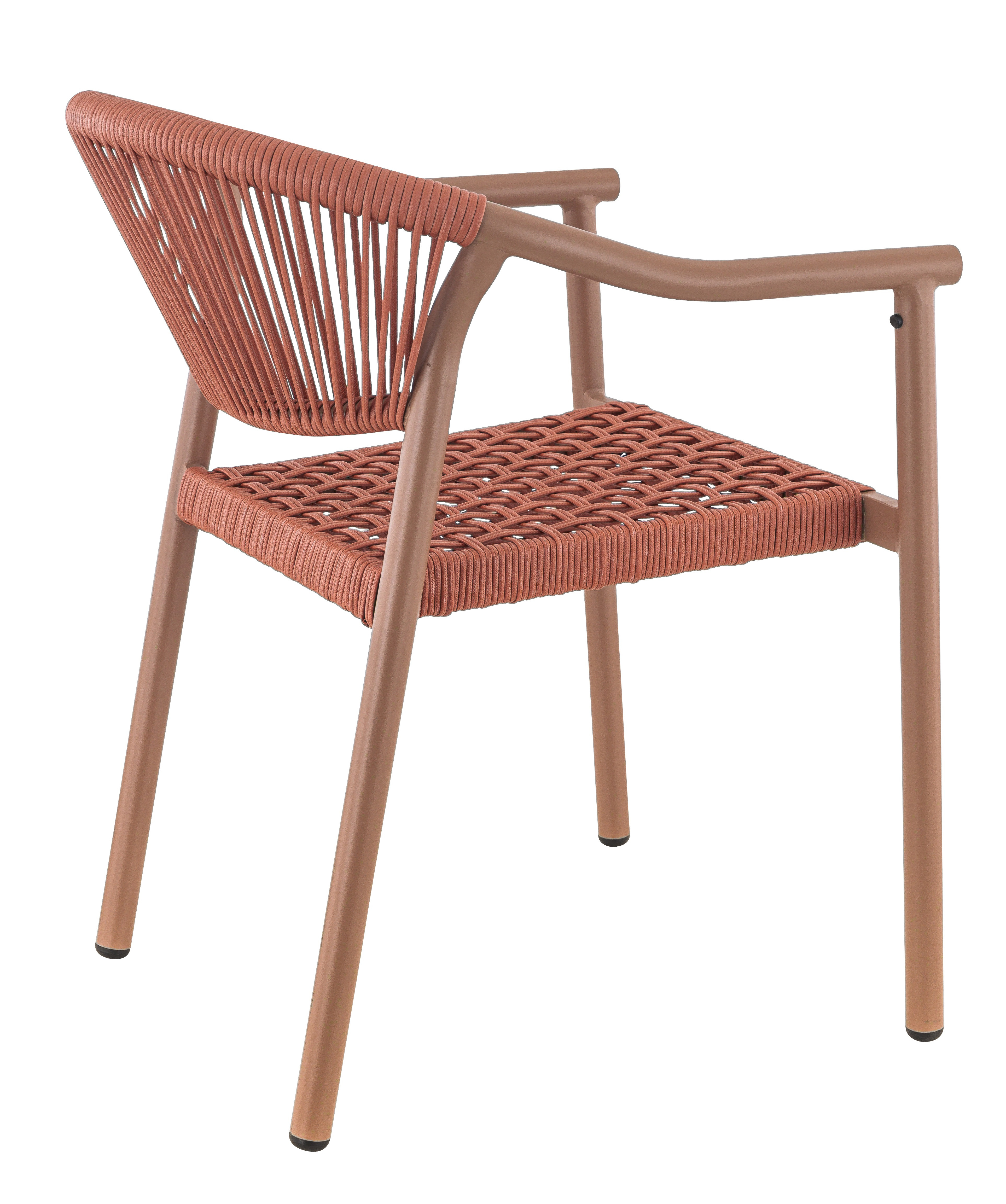 La chaise de terrasse d'extérieur Davida, c’est le mariage parfait entre style et fonctionnalité. Imaginée en Belgique par la marque de renom Restoflex, cette chaise de qualité professionnelle est spécialement conçue pour sublimer les espaces extérieurs de cafés, restaurants ou hôtels. Son revêtement en tressage PE rond effet corde lui confère une élégance naturelle, tandis que sa structure en aluminium robuste lui permet de résister aux caprices de la météo. Disponible en coloris sable ou terracotta, elle s'intègre harmonieusement à tout mobilier de terrasse, créant une ambiance conviviale et raffinée. Avec une assise de 57 cm de large et un dossier de 31 cm de hauteur, le confort est au rendez-vous, même pour les longues discussions en terrasse.