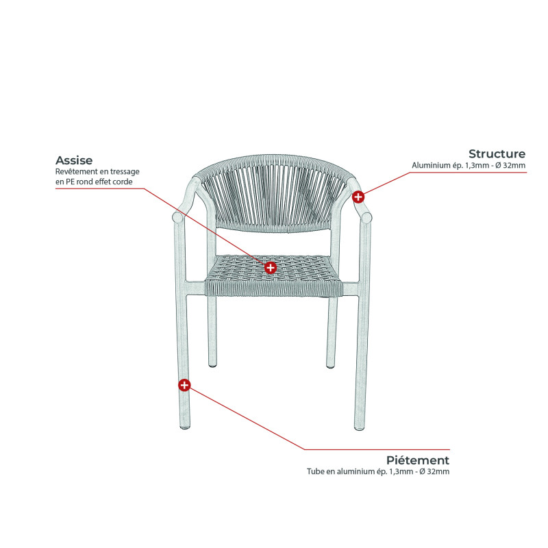 | Matière du piètement | Aluminium ép. 1,3 mm - Ø 32 mm |