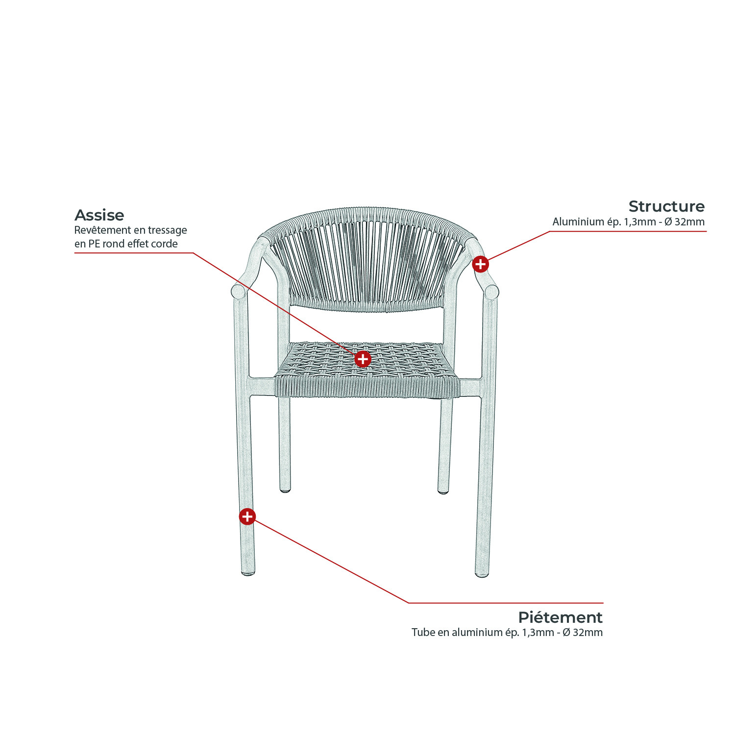 Avec son design raffiné et sa praticité incontestable, la chaise Davida séduit par son charme naturel et contemporain. Le tressage effet corde lui donne un style authentique tout en restant moderne. Peu importe le décor, cette chaise d’extérieur s’accorde harmonieusement avec divers styles d’extérieur, créant ainsi une atmosphère accueillante et confortable. Côté entretien, rien de plus simple : un chiffon doux et humide suffit pour lui redonner son éclat d’origine. En d’autres termes, elle conserve son aspect neuf même après de nombreuses saisons en plein air. Ce mobilier de terrasse allie élégance et praticité sans compromis.