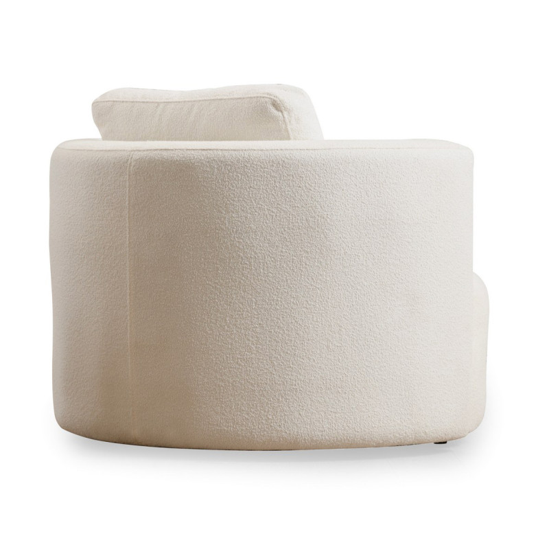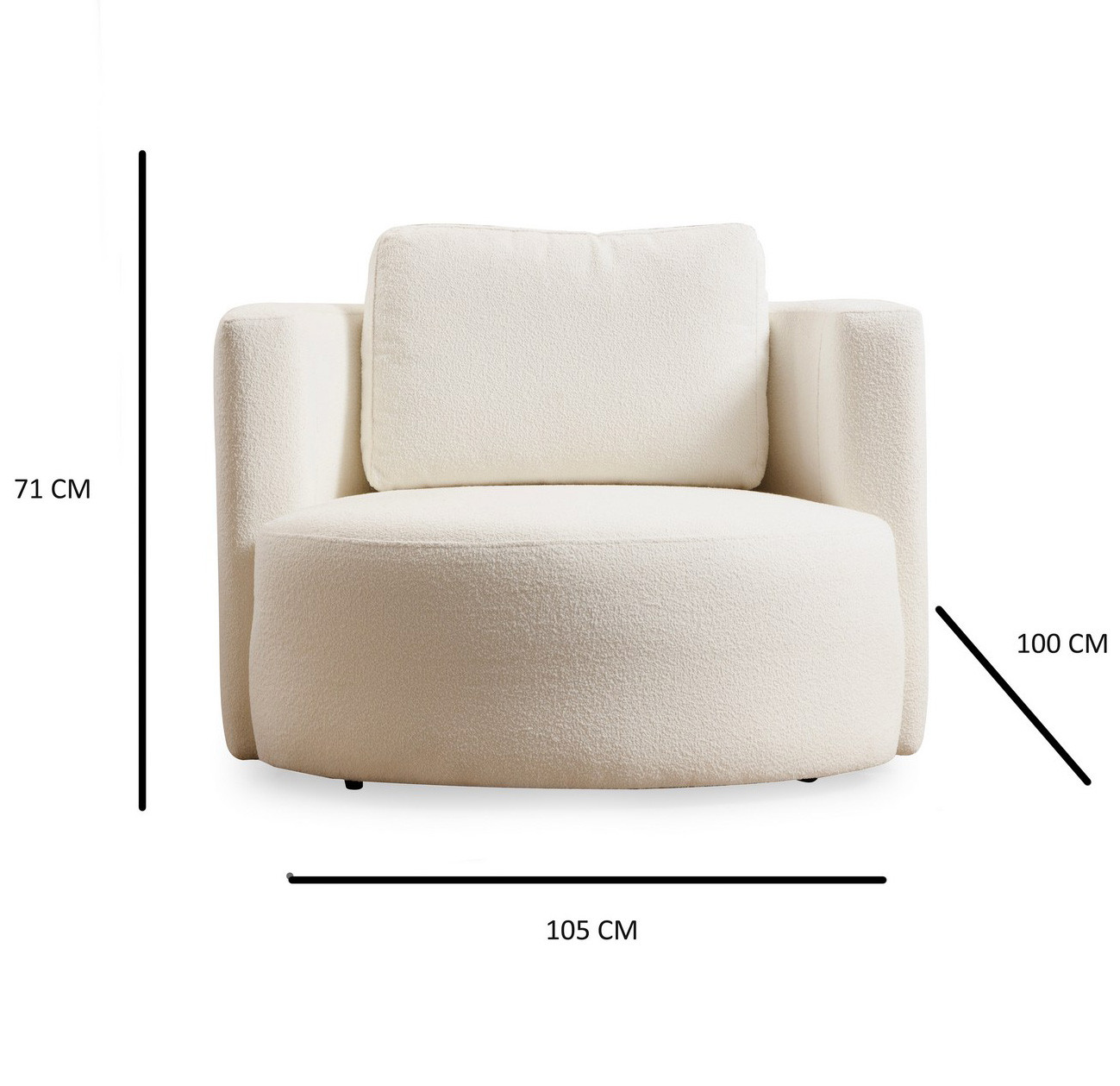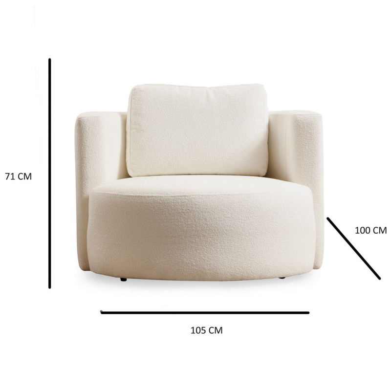 La structure du fauteuil Atlas témoigne d'un savoir-faire rigoureux avec son armature en hêtre massif et panneaux de particules de première qualité. Ce meuble de salon design moderne repose sur un piétement en PVC rond qui assure une excellente stabilité tout en apportant une touche contemporaine à l'ensemble. La teinte crème intemporelle s'harmonise facilement avec tous les styles de décoration, du scandinave au contemporain, et s'intègre naturellement dans n'importe quel espace de vie. Son style épuré et ses lignes douces en font un élément décoratif à part entière qui valorise votre aménagement intérieur.