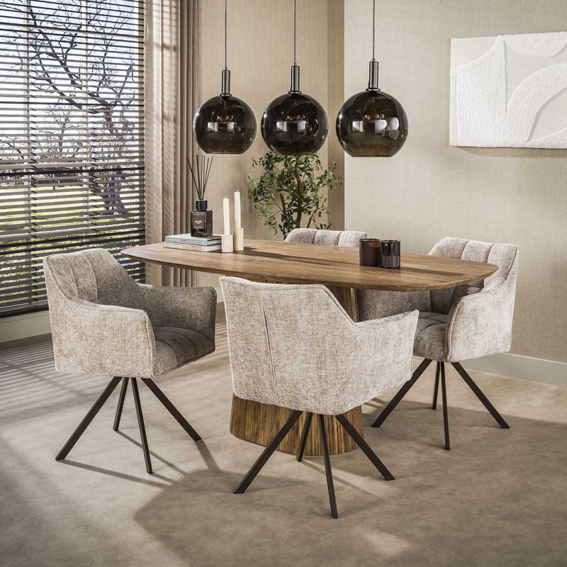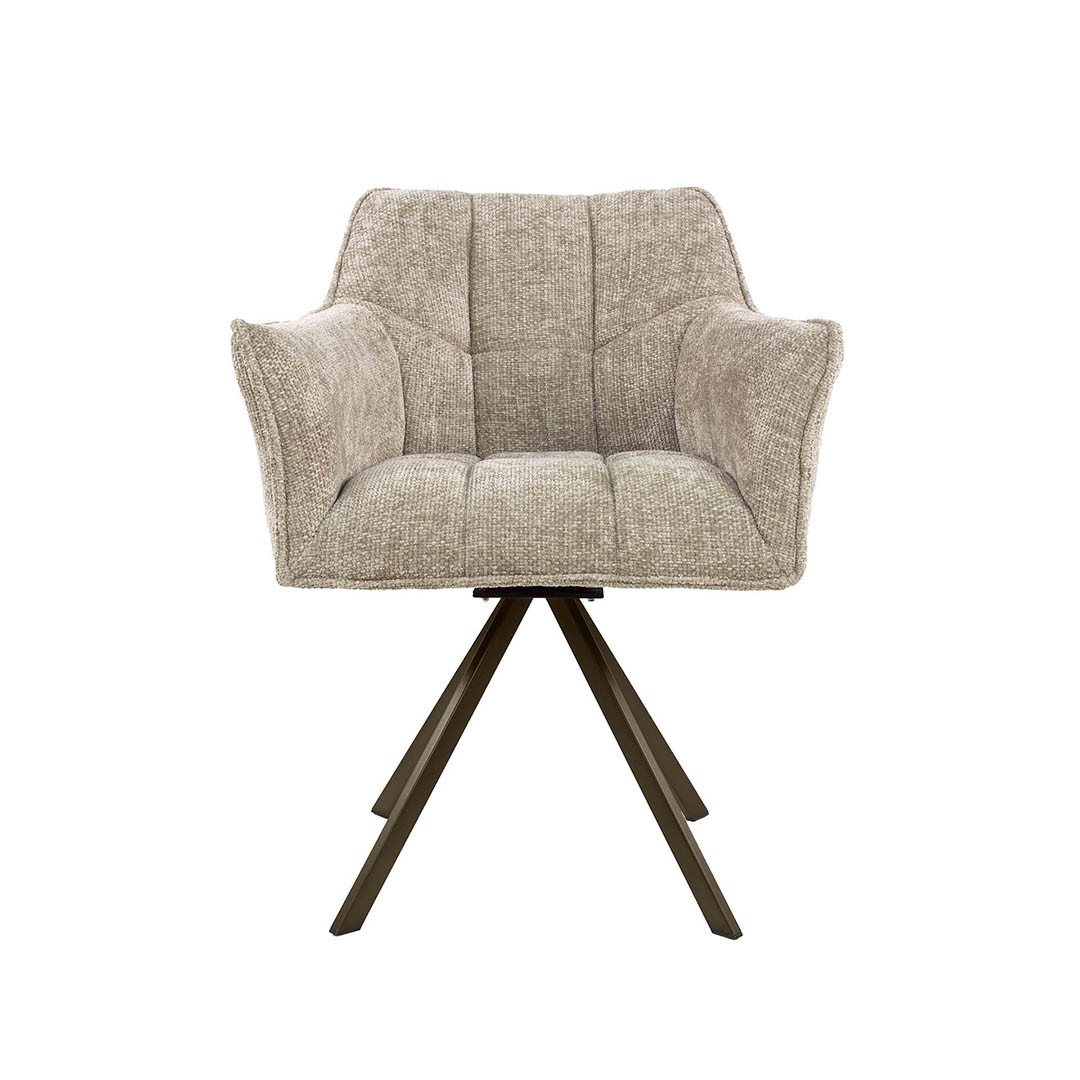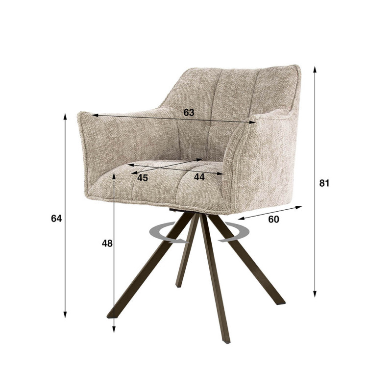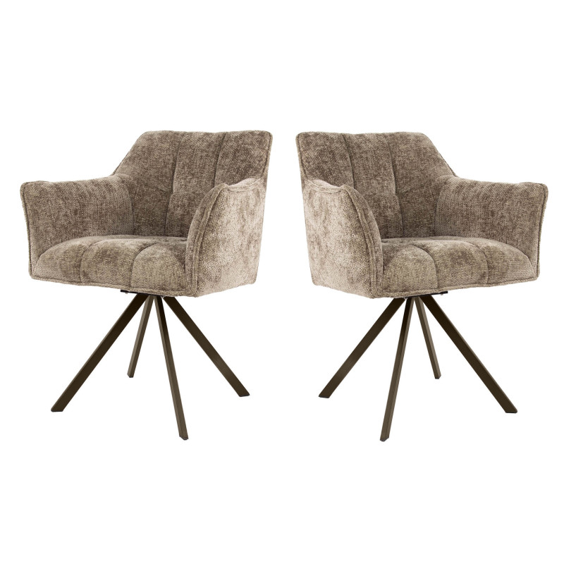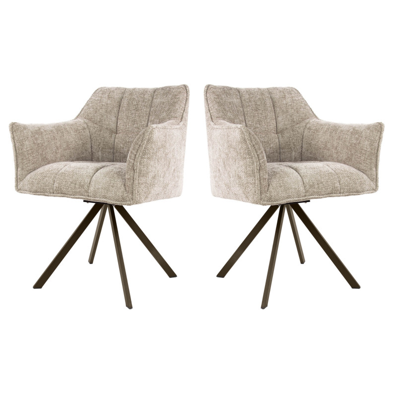 Apportez une touche contemporaine à votre intérieur avec le lot de deux fauteuils rotatifs Marcus, un choix idéal pour allier design et confort. Conçu aux Pays-Bas par la marque Vivabita, ce fauteuil en tissu séduit par son allure élégante et son assise ergonomique pensée pour un bien-être optimal. Son revêtement en tissu doux, décliné en trois coloris tendance – taupe, sable et champagne – s’adapte harmonieusement à tous les styles de décoration. Son piétement en métal noir ajoute une touche de modernité et garantit une excellente stabilité, tout en offrant une rotation fluide à 180°, idéale pour une utilisation pratique et confortable.