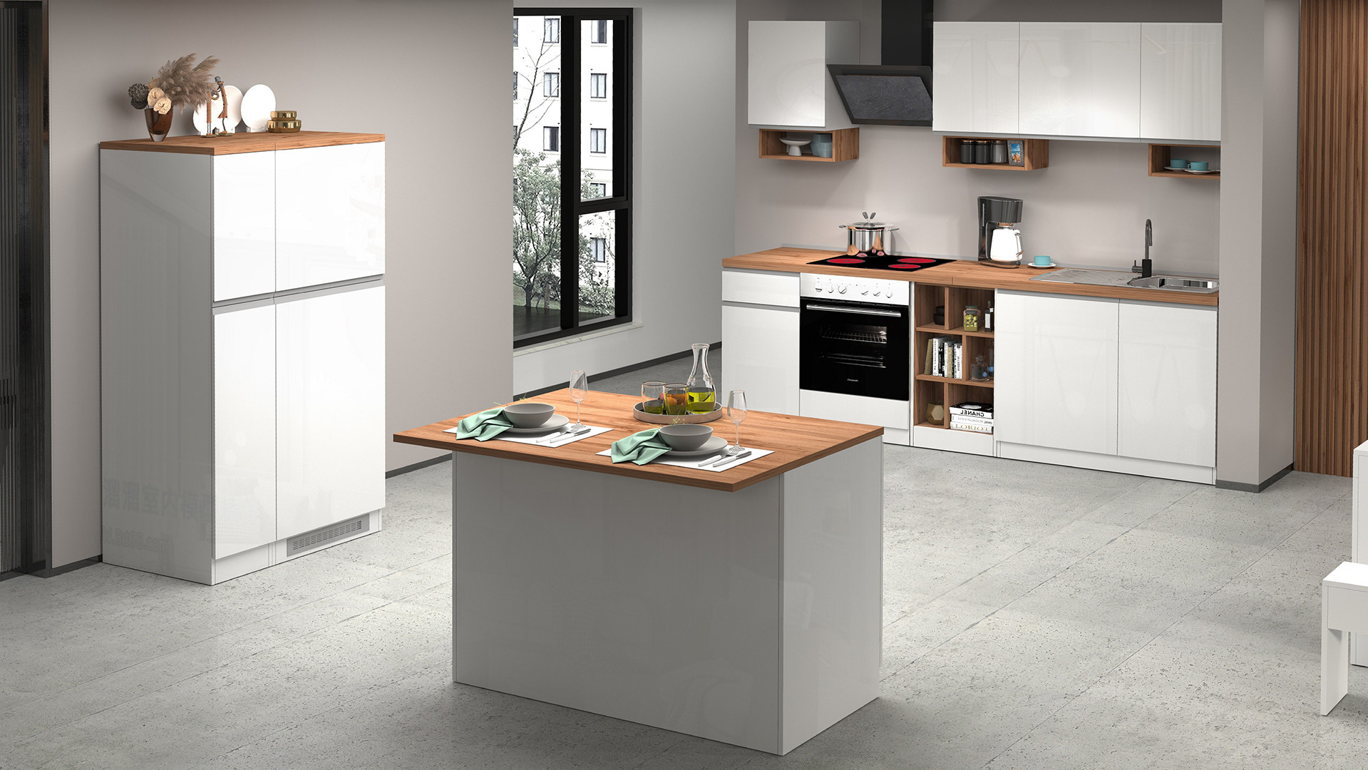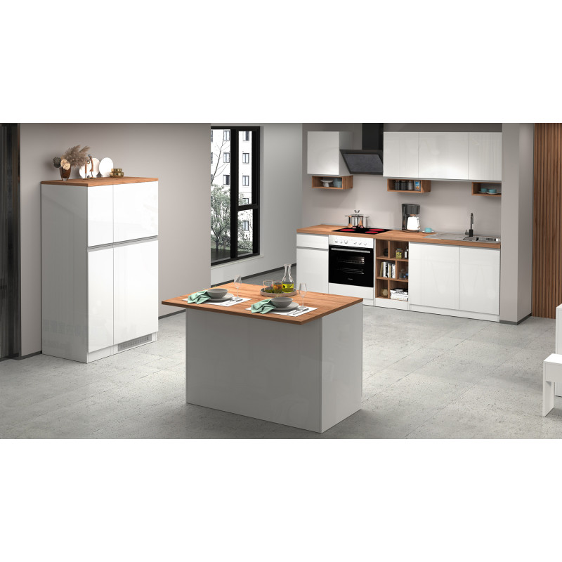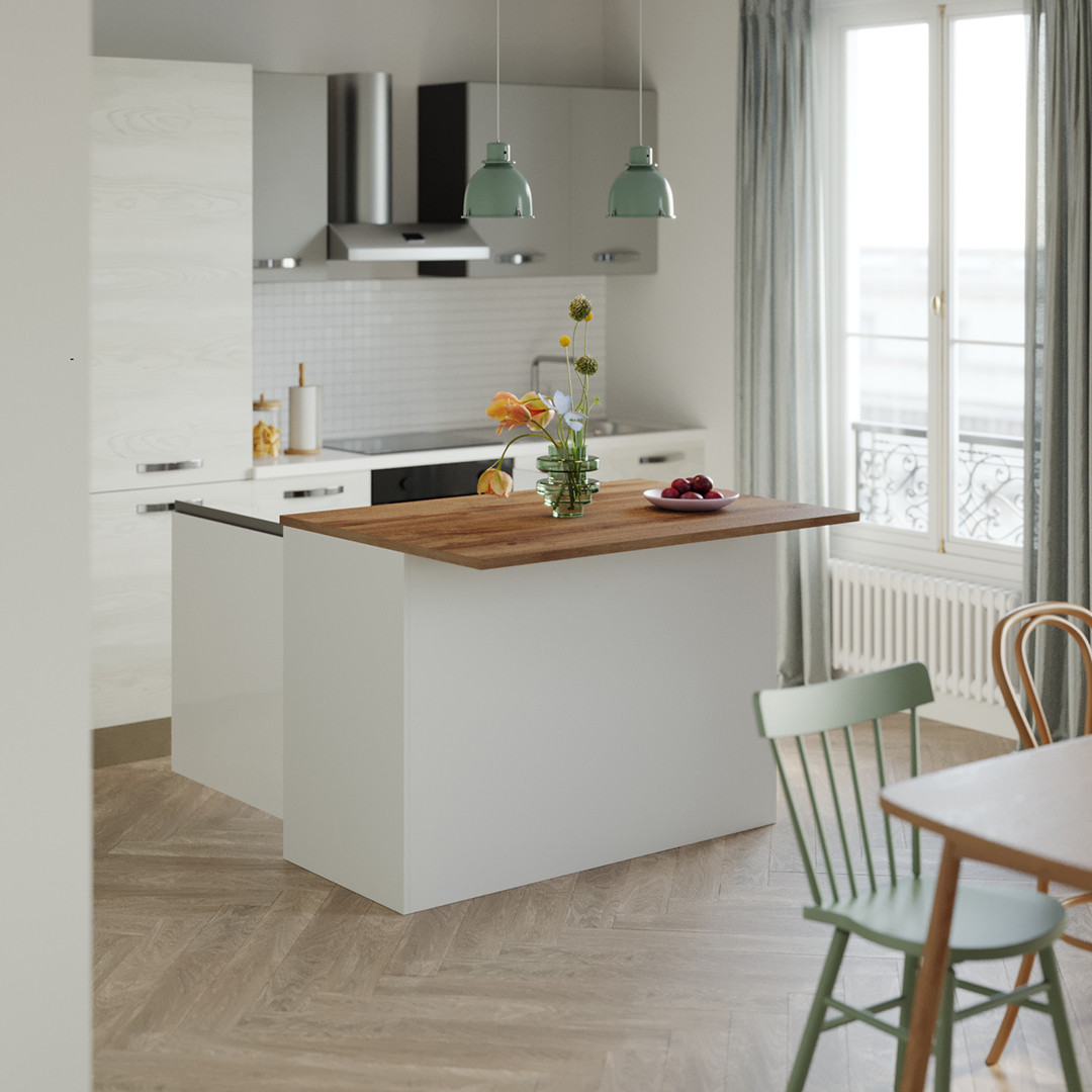 | Ilot de cuisine moderne 155 cm blanc brillant/chêne wotan Solena | | Longueur: 155 cm Hauteur: 90 cm Profondeur: 90 cm | En stock 48 à 72h | 404 € 99 | ||