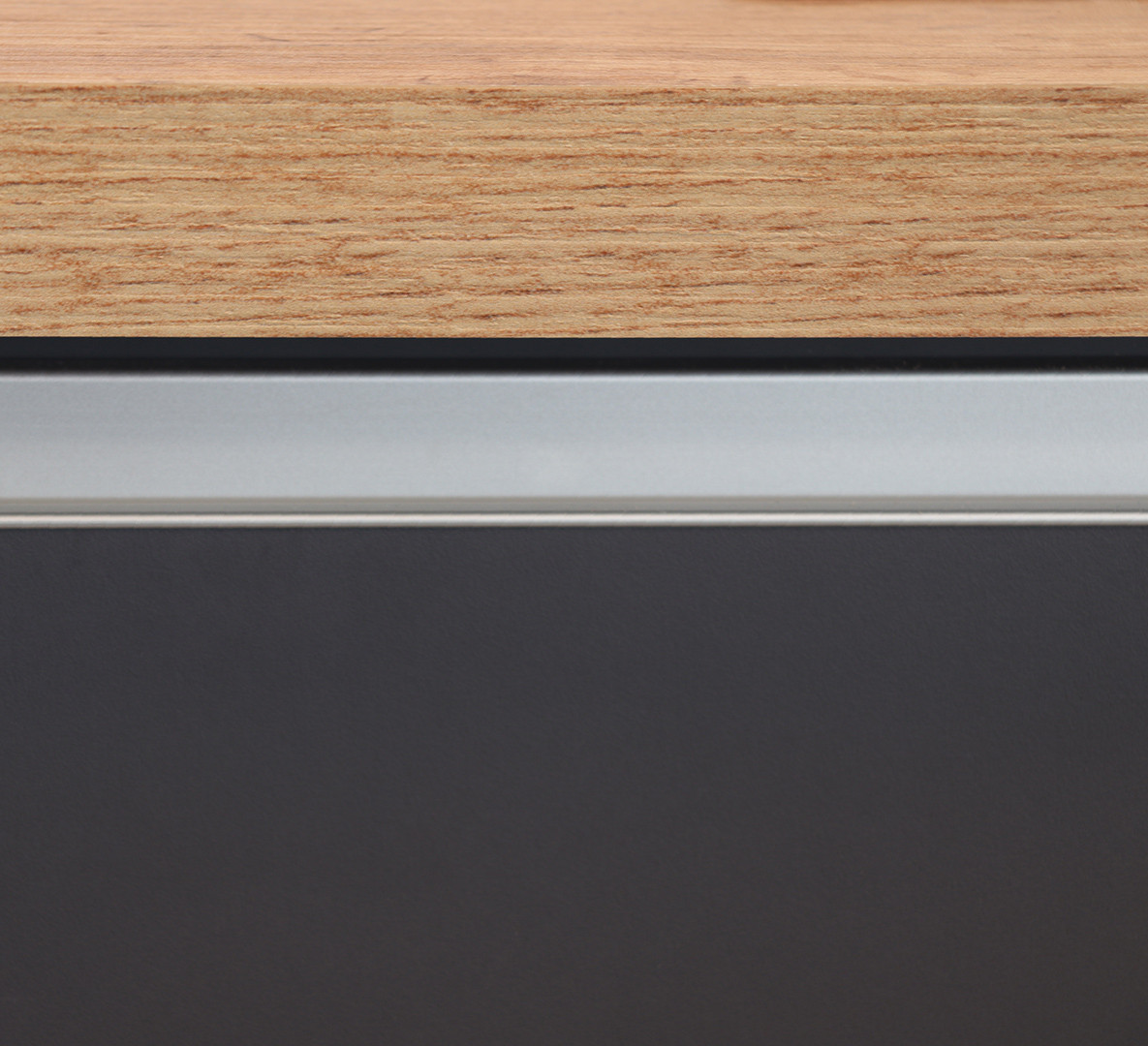 Les chants (côtés) du plateau sont finis avec des bandes thermoplastiques ABS, très résistantes.