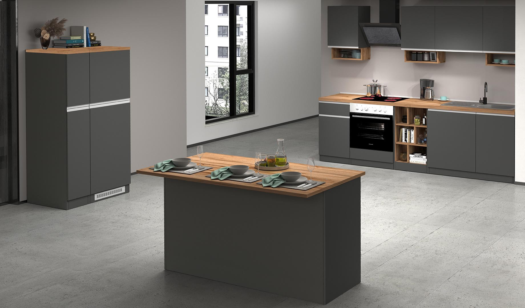 | Ilot de cuisine moderne 160 cm anthracite mat/chêne wotan Solena | | Longueur: 160 cm Hauteur: 90 cm Profondeur: 90 cm | En stock 48 à 72h | 467 € 99 | ||