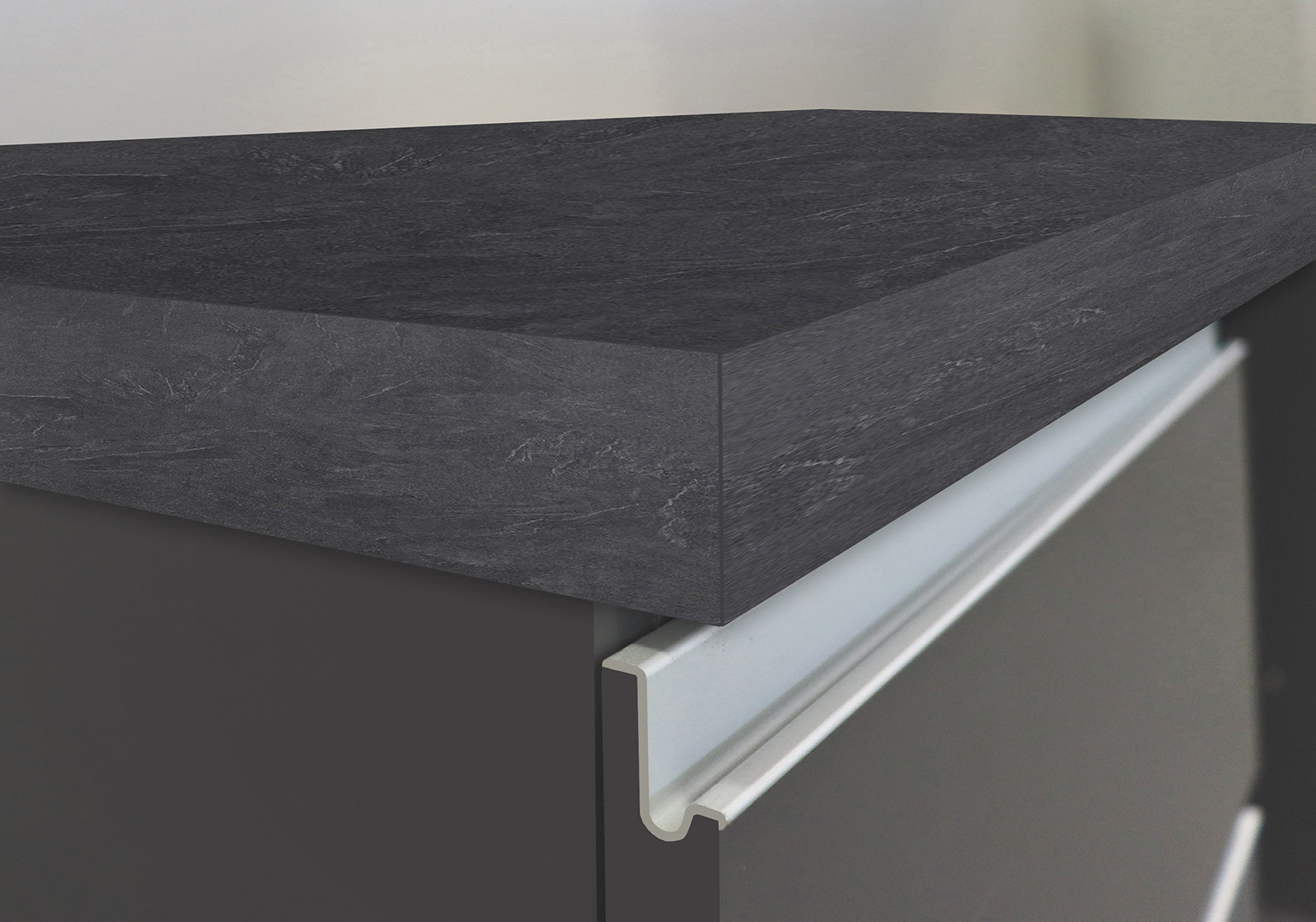 Les chants (côtés) du plateau sont finis avec des bandes thermoplastiques ABS, très résistantes.