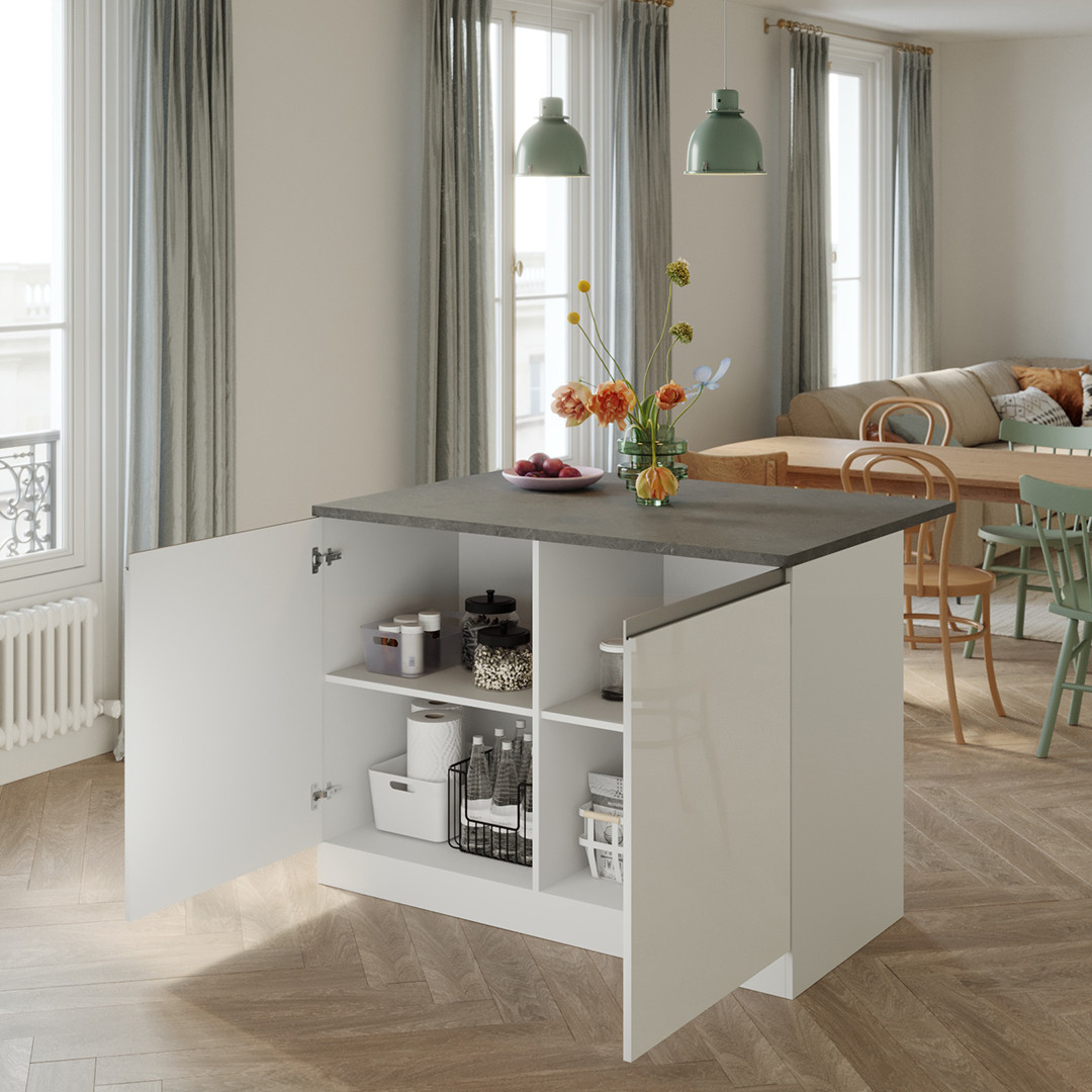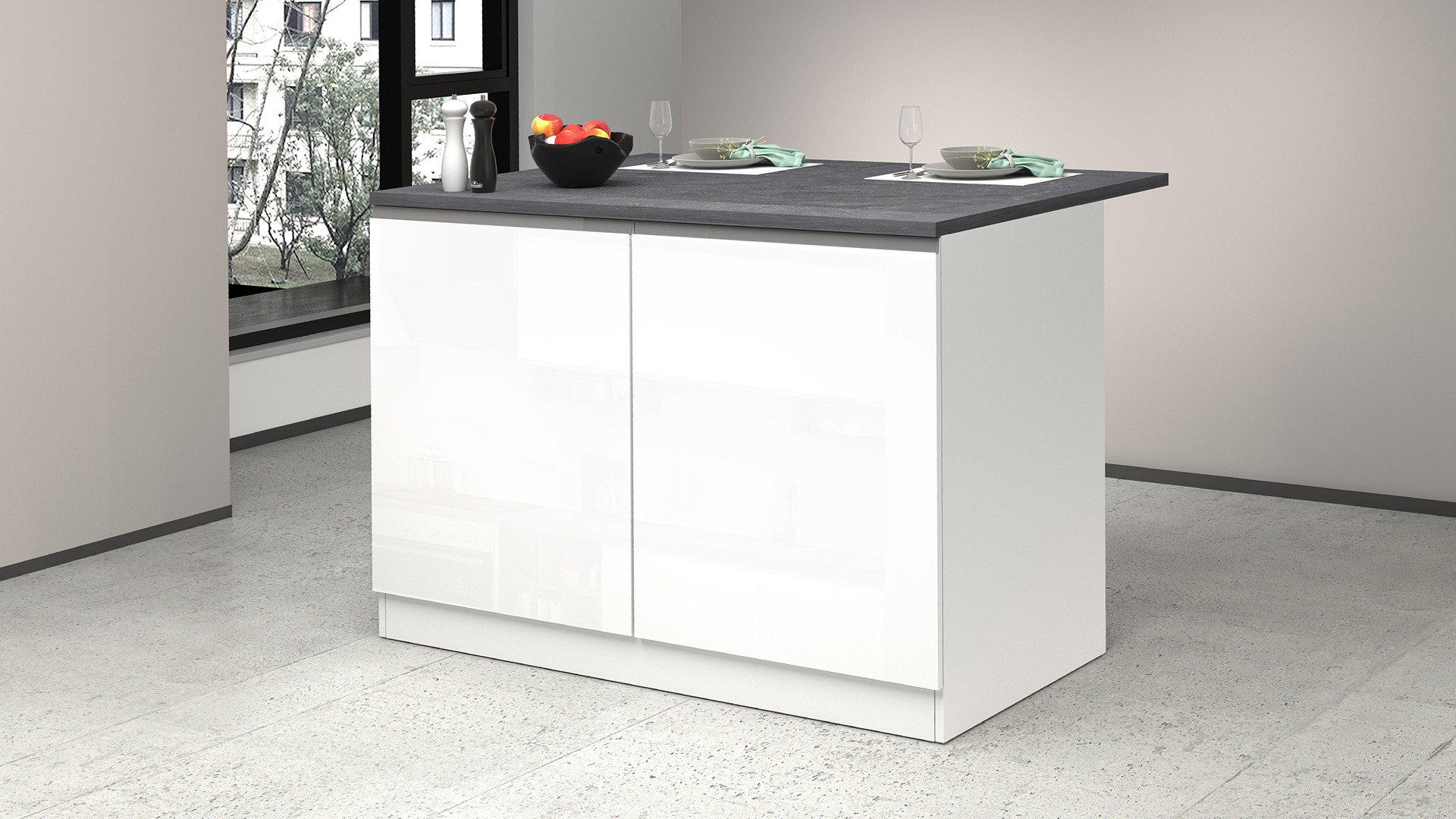 Ilot de cuisine moderne 155 cm blanc brillant/béton Solena | ![]() | Longueur: 155 cm Hauteur: 90 cm Profondeur: 90 cm | En stock 48 à 72h | 404 € 99 | ||