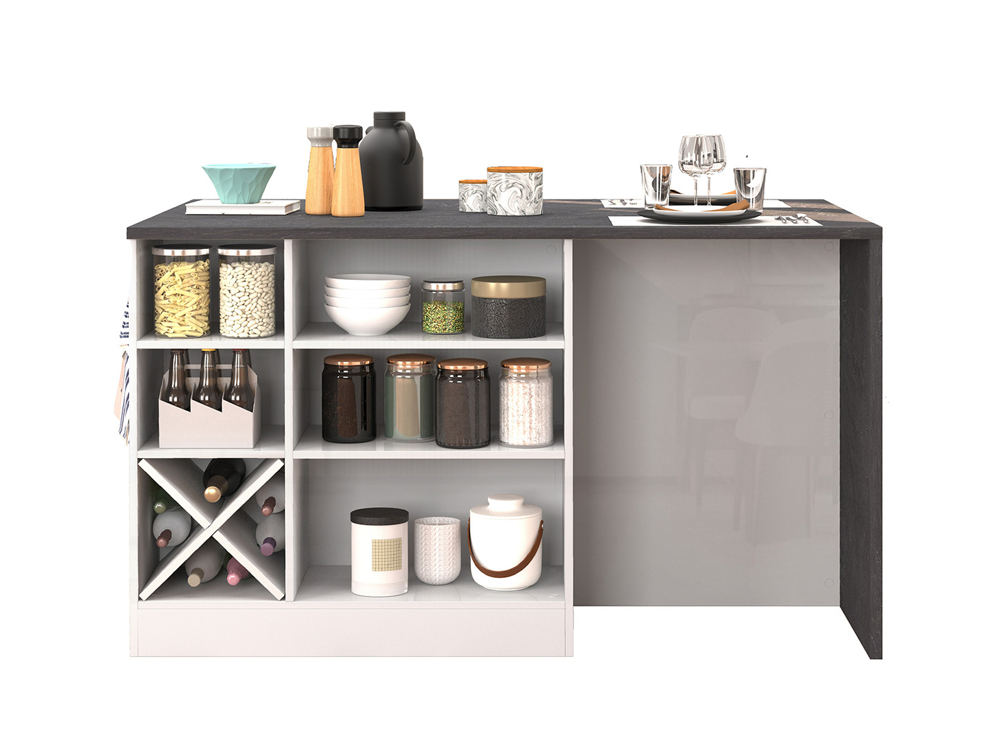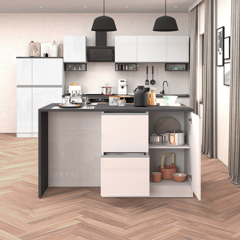 | Îlot de cuisine moderne 4 portes blanc brillant/gris béton Solena | | Longueur: 200 cm Hauteur: 90 cm Profondeur: 90 cm | En stock 48 à 72h | 659 € 99 | ||