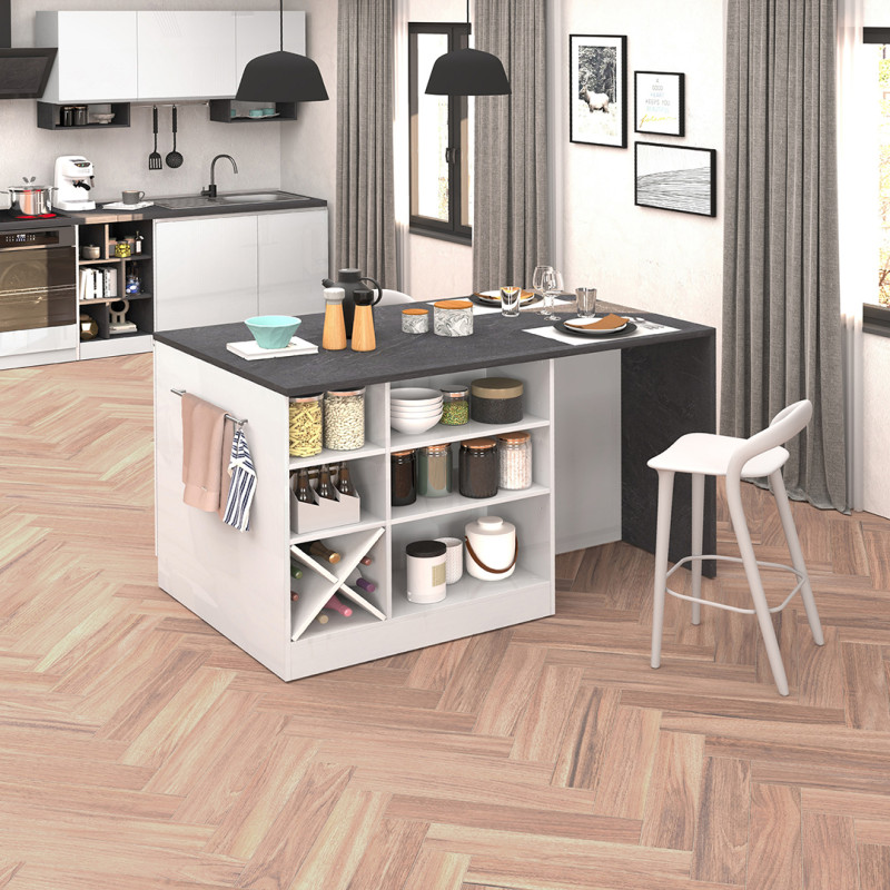 | Îlot de cuisine moderne 200 cm blanc brillant/béton Solena | | Longueur: 200 cm Hauteur: 90 cm Profondeur: 90 cm | En stock 48 à 72h | 925 € 00 | ||