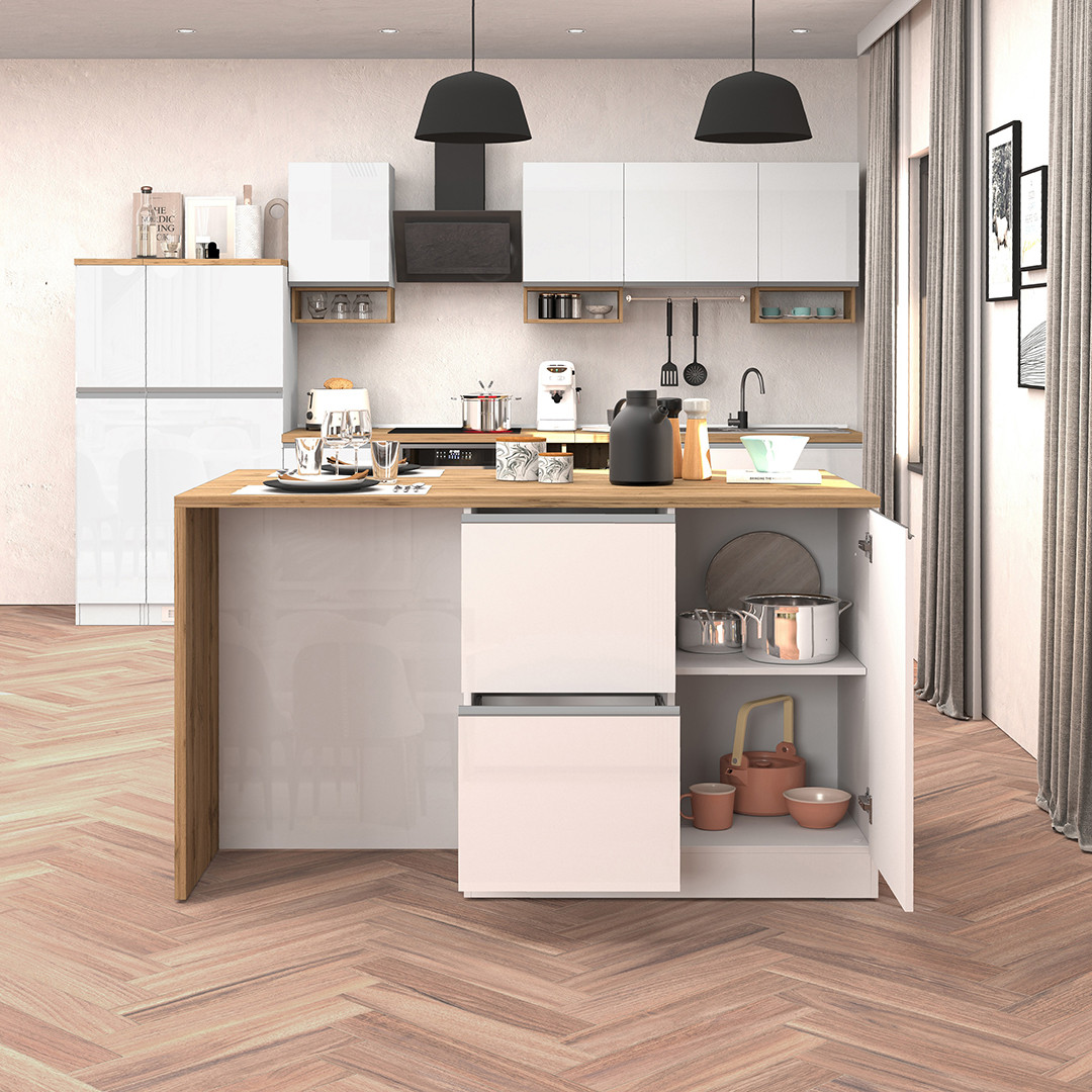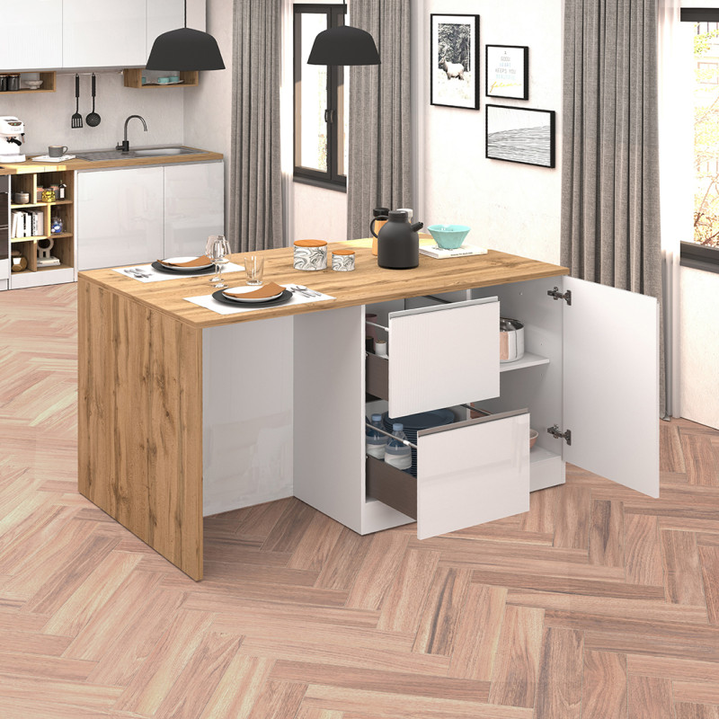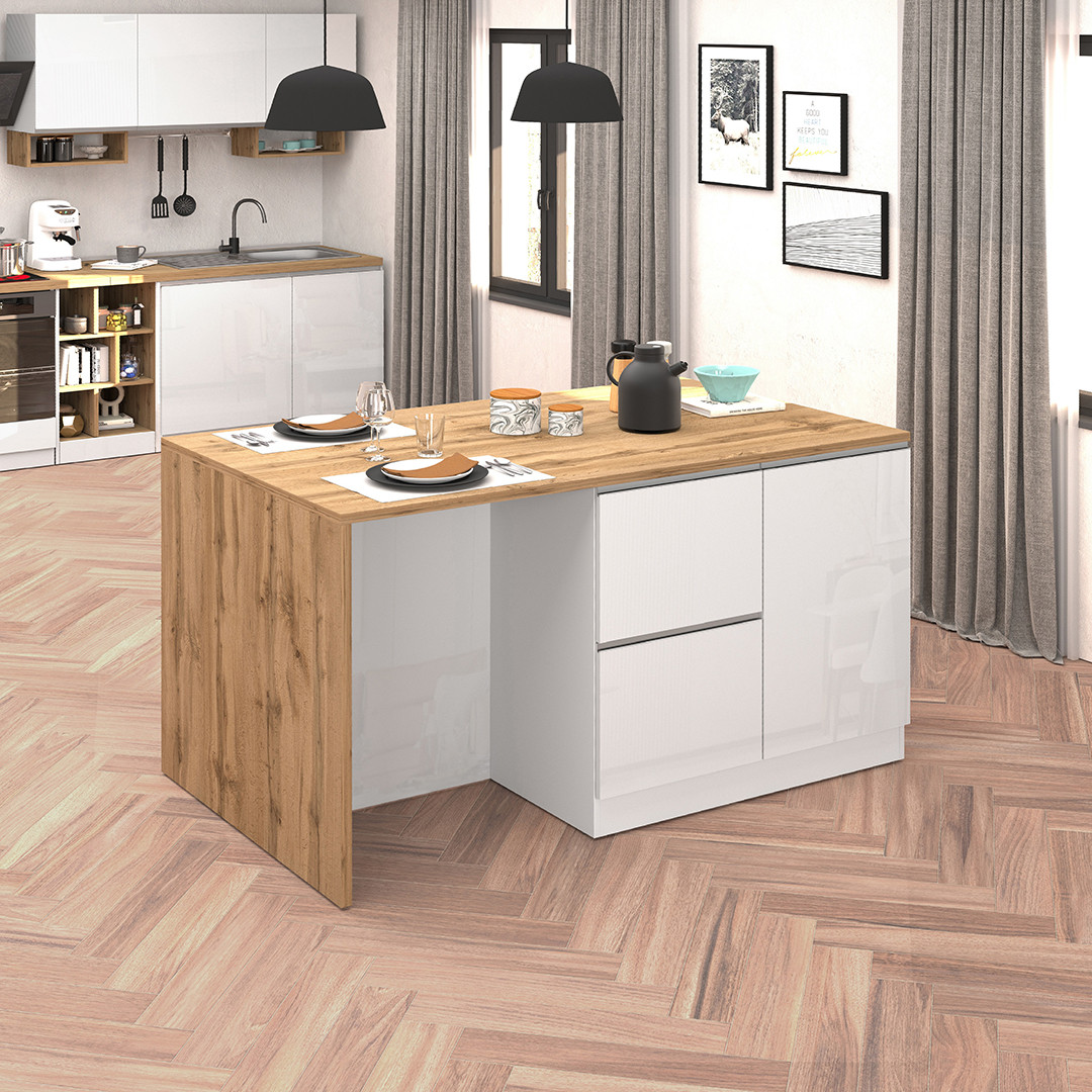 | Îlot de cuisine moderne 2 portes blanc brillant/chêne wotan Solena | | Longueur: 160 cm Hauteur: 90 cm Profondeur: 90 cm | En stock 48 à 72h | 525 € 00 | ||