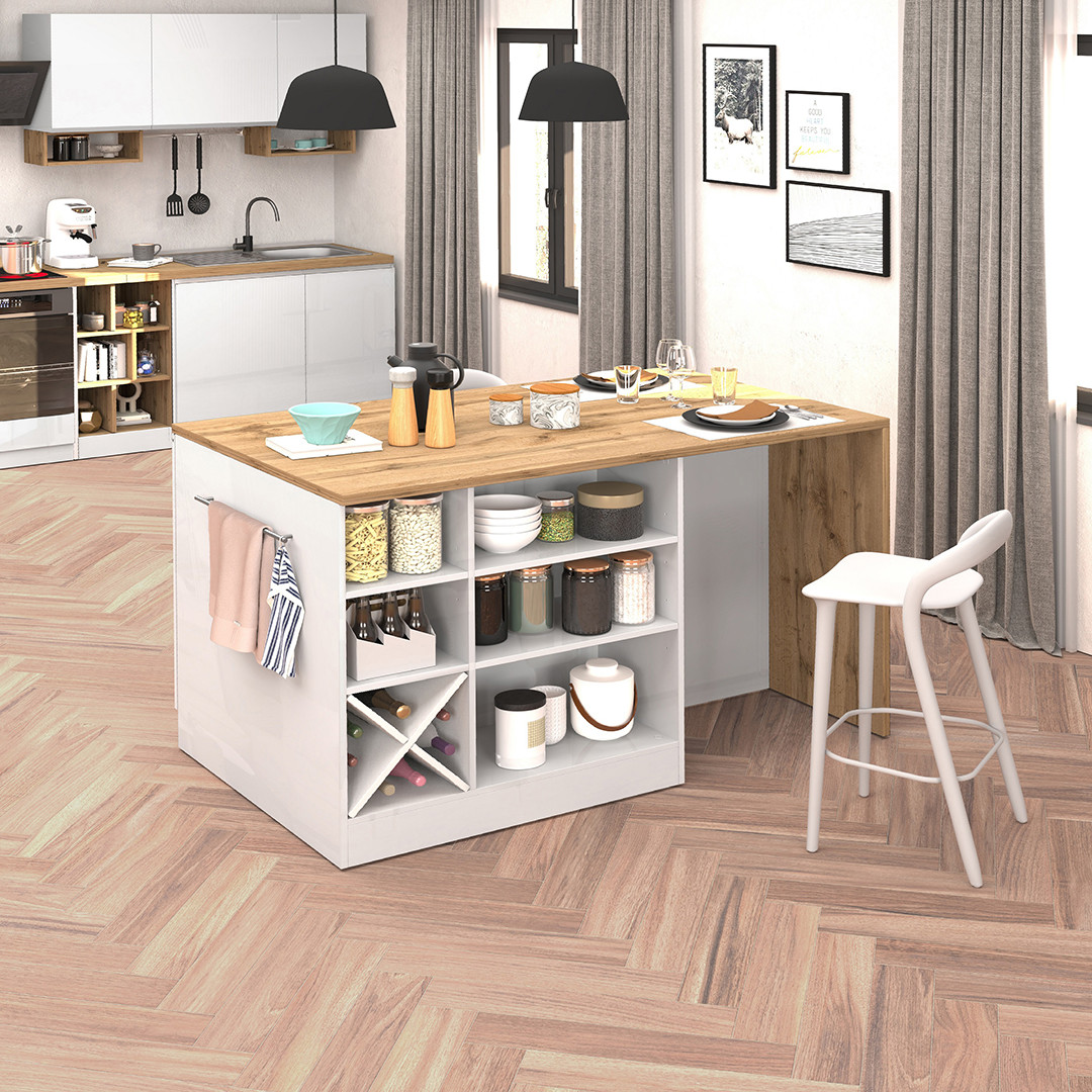 | Îlot de cuisine moderne 200 cm blanc brillant/chêne wotan Solena | | Longueur: 200 cm Hauteur: 90 cm Profondeur: 90 cm | En stock 48 à 72h | 925 € 00 | ||